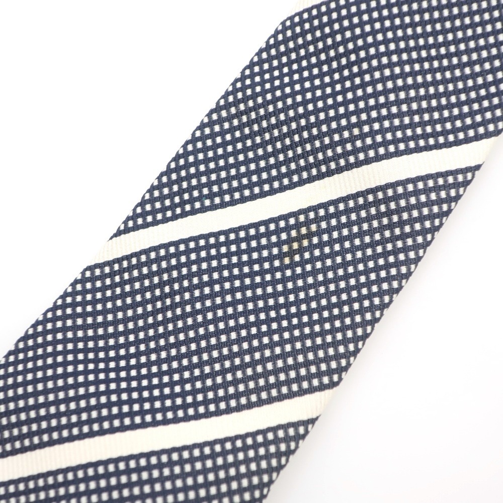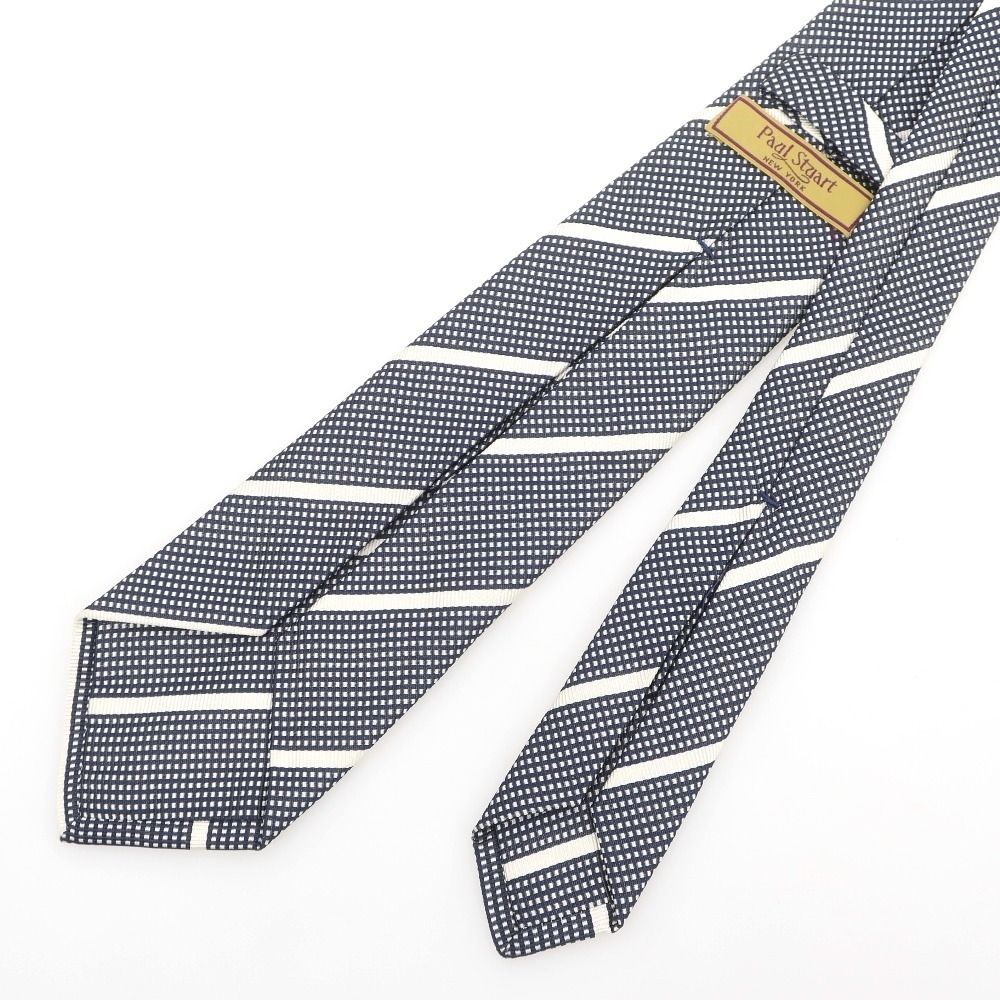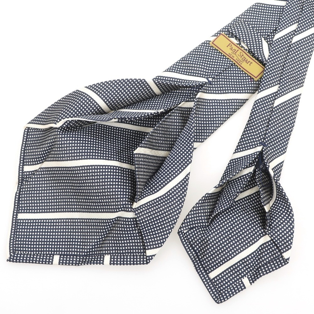 【中古】ポールスチュアート PAUL STUART クアトロピエゲ シルク ストライプ柄ネクタイ ネイビーxホワイト