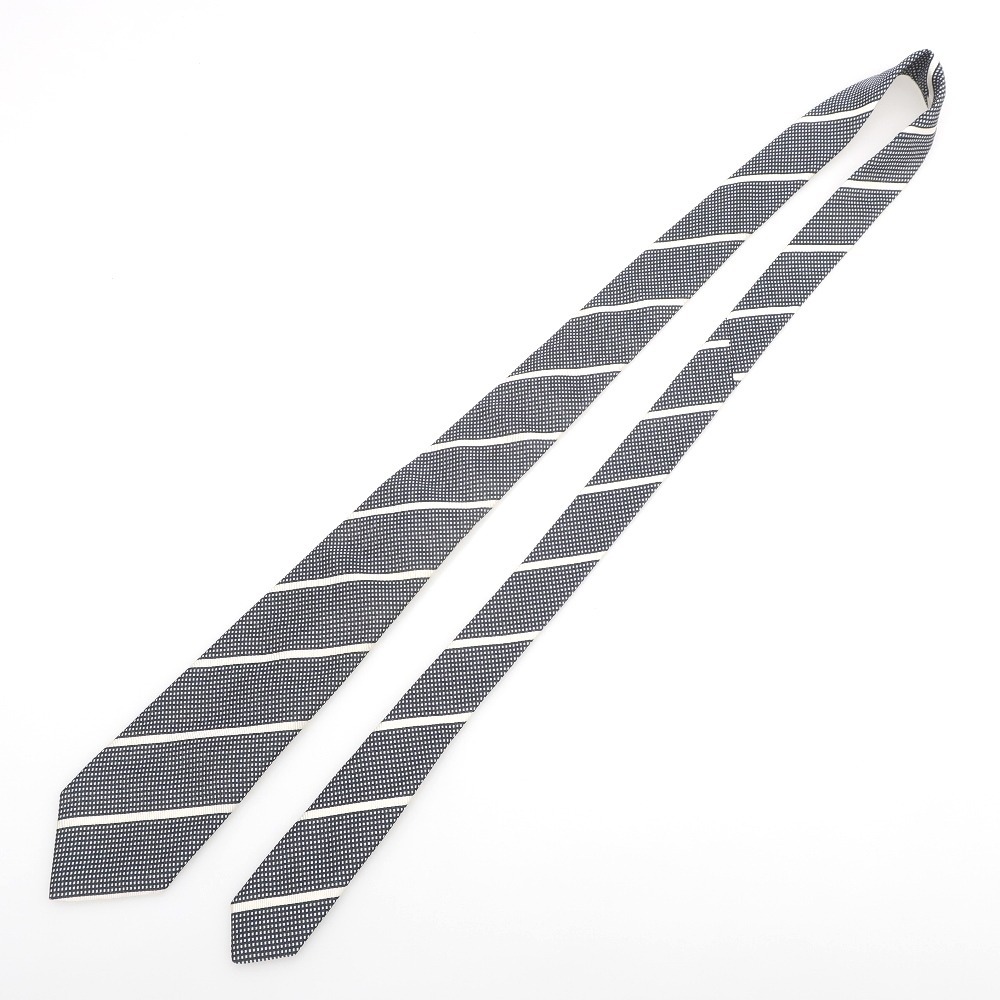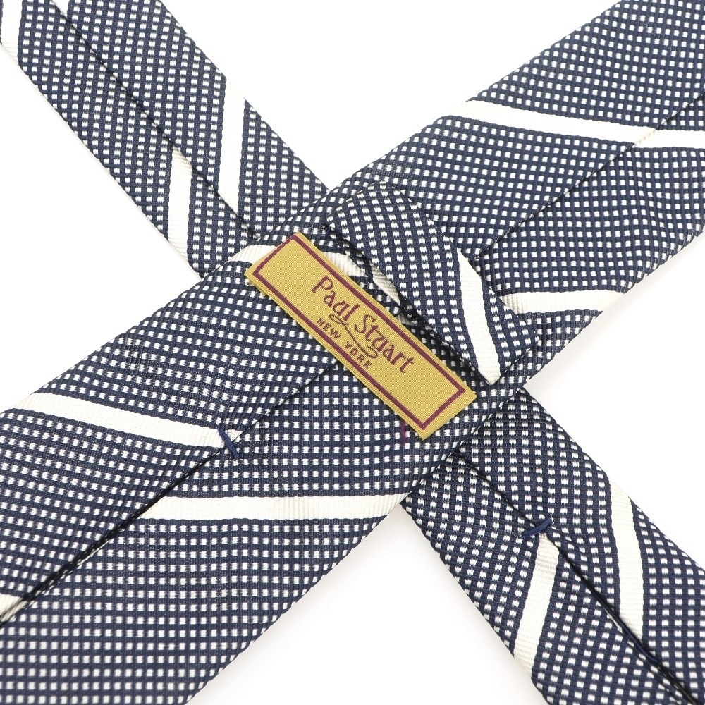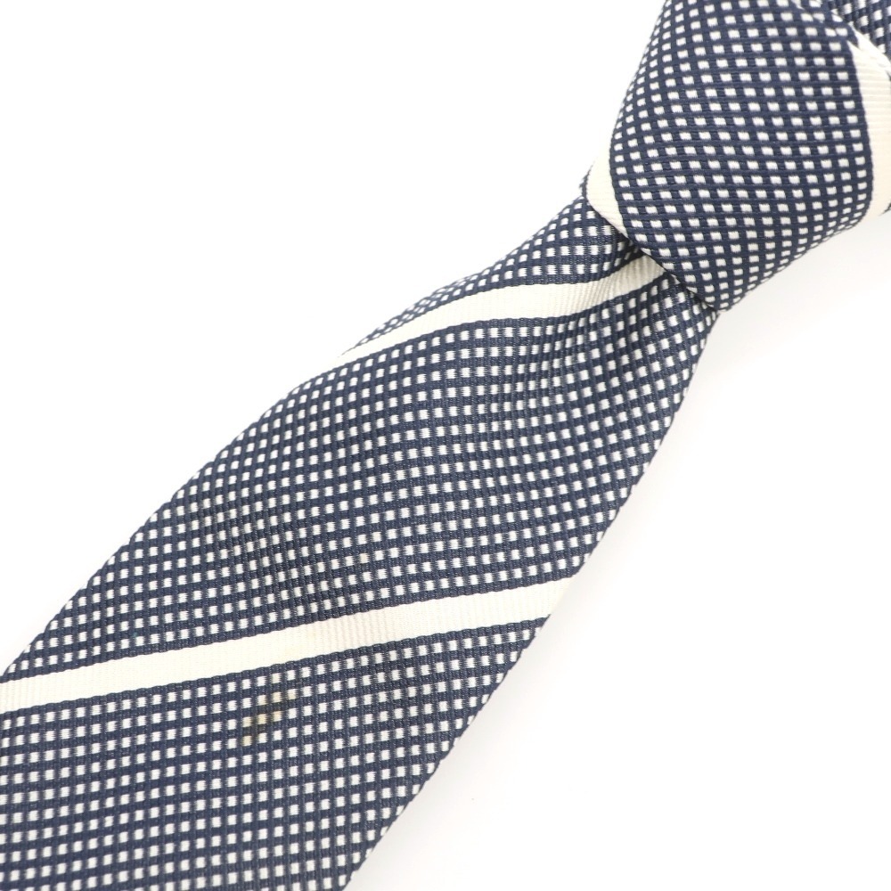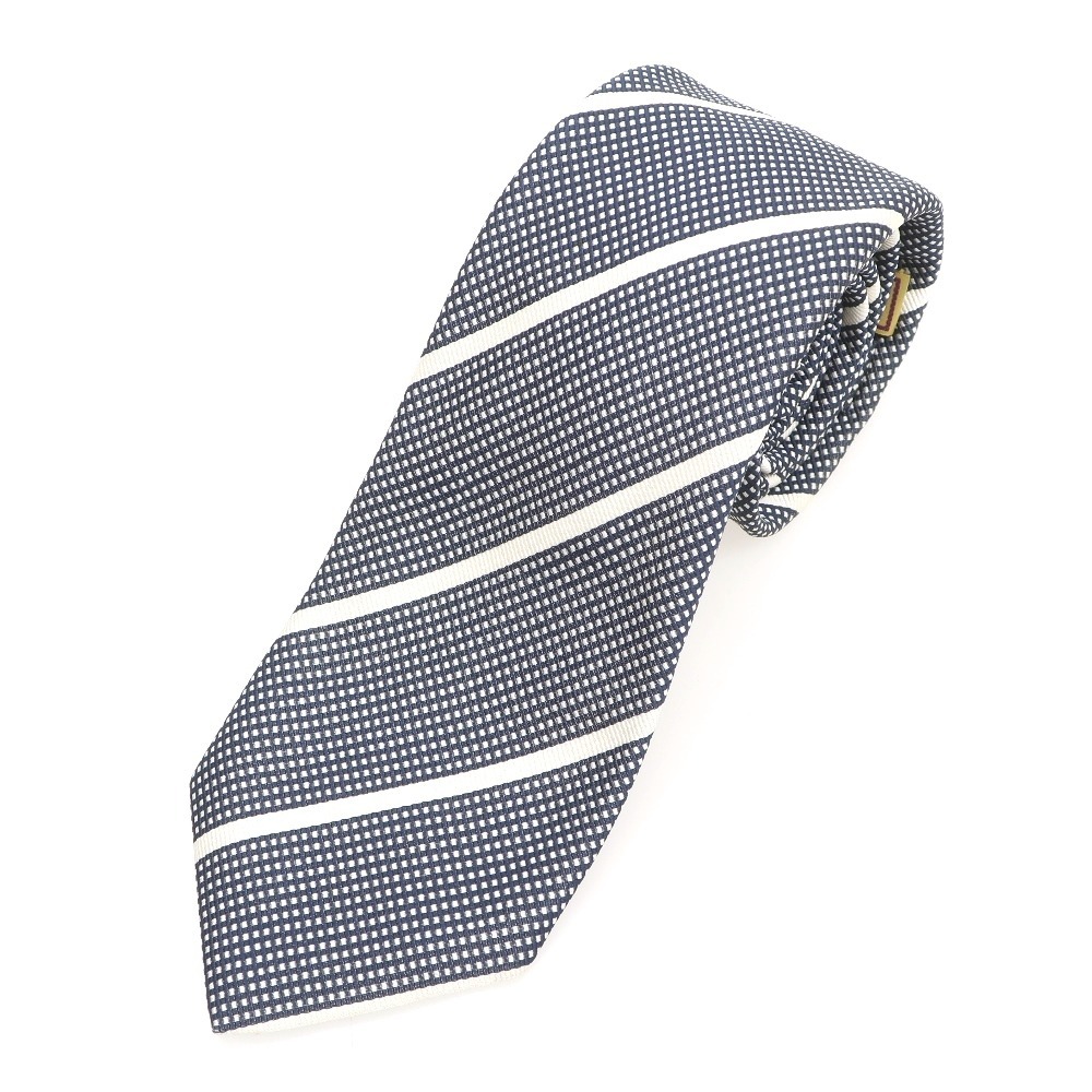 【中古】ポールスチュアート PAUL STUART クアトロピエゲ シルク ストライプ柄ネクタイ ネイビーxホワイト