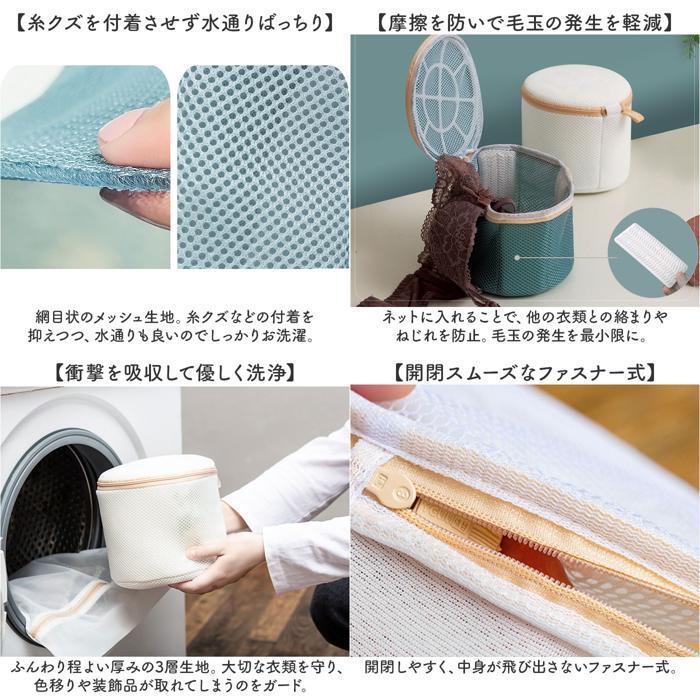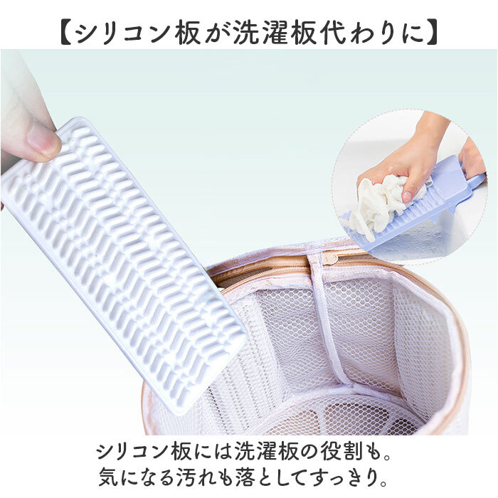 商品説明 | ・・【ブラのお洗濯を優しく手軽に】 ・ブラの形崩れを防いで、洗濯機洗いできる!「洗濯ネット」が新登場。 ・【フレームとシリコン板でブラを保護】 ・上下に円形フレーム、サイドに4枚のシリコン板を内蔵。ネットの形をキープし、ブラの型崩れをガード◎ ・【シリコン板が洗濯板代わりに】 ・シリコン板には洗濯板の役割も。気になる汚れも落としてすっきり。 ・【手洗い不要で洗濯機にポイッとIN】 ・立体感のある円柱型。面倒な手洗いは不要、ネットに入れて洗濯機へ! ・【糸クズを付着させず水通りばっちり】 ・網目状のメッシュ生地。糸クズなどの付着を抑えつつ、水通りも良いのでしっかりお洗濯。 ・【摩擦を防いで毛玉の発生を軽減】 ・ネットに入れることで、他の衣類との絡まりやねじれを防止。毛玉の発生を最小限に。 ・【衝撃を吸収して優しく洗浄】 ・ふんわり程よい厚みの3層生地。大切な衣類を守り、色移りや装飾品が取れてしまうのをガード。 ・【開閉スムーズなファスナー式】 ・開閉しやすく、中身が飛び出さないファスナー式。 ・【引き手を隠して傷つきから守る!】 ・ファスナーの引き手隠し付き。糸が引っかかってほつれたりするなどの心配を減らせる! ・【2枚ほど収まるコンパクトサイズ】 ・・2枚程度のブラが入る大きさ。デイリー使いにぴったり。 ・(※ブラの形状や大きさにより異なります。) |