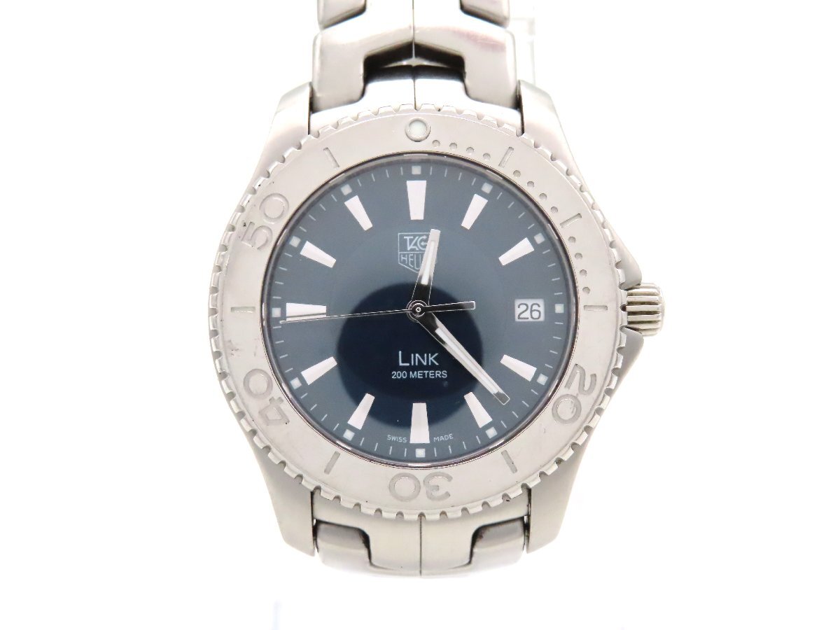 1円 タグホイヤー WJ1112 リンク SS ネイビー文字盤 メンズ 稼働 QZ 保 コマ 26004 KP
