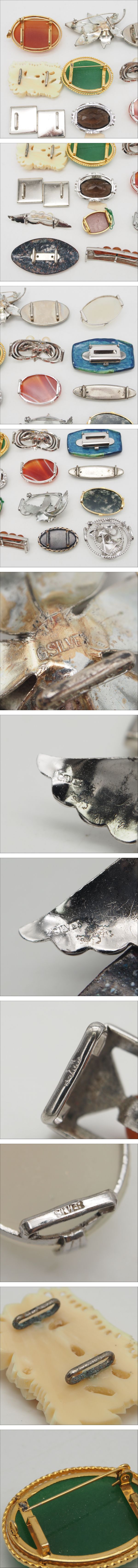 (WOB0910) 1円 帯留め 20個 大量セット 七宝 陶器 瑪瑙 メノウ 天然石 シルバー アンティーク 等 まとめて