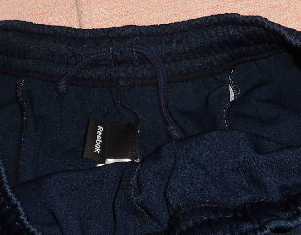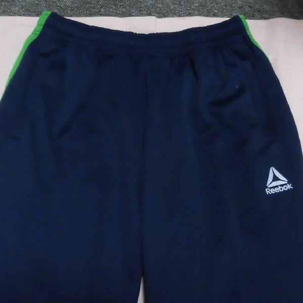 自宅で洗濯済みです。 右ひざに擦れて少し薄くなっている部分があります。 また、両スソに折り目が2段階であり、左腰あたりに名前シールをはがした跡があります。 それ以外は比較的キレイです。 ☆ サイズは3L、身長180~190センチ、ウエスト86~94センチ ☆ 色は紺、緑部分あり ☆ 実寸は、また下78センチ ☆ ポリエステル100% ☆ ウエストはゴムとヒモ ☆ ポケット2つあり リーボック RBK18195S | ||