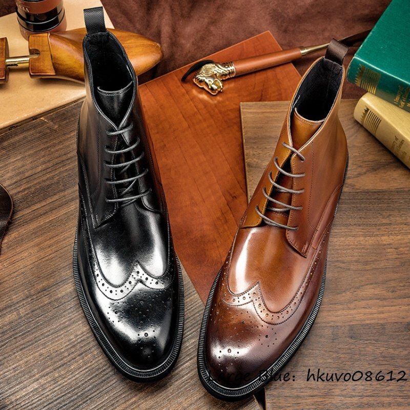 最上級★マーティンブーツ メンズ 本革 レザーブーツ 職人手作り 彫り 紳士用 皮靴 作業靴 ショートブーツ ビジネス 牛革 ブラック 24.5cm