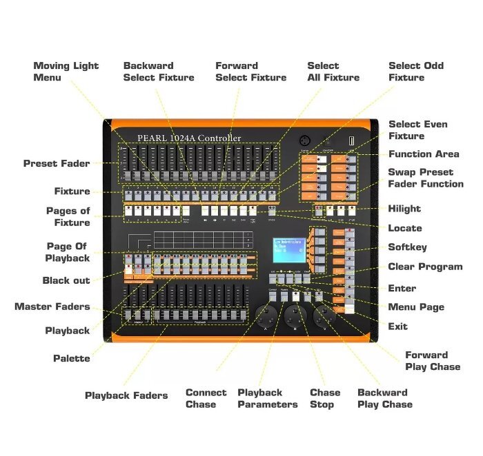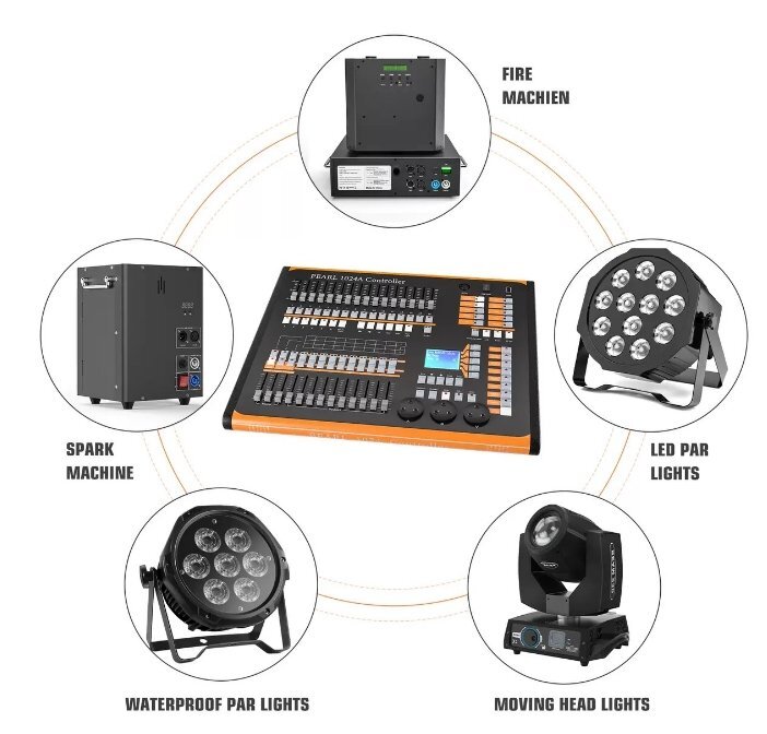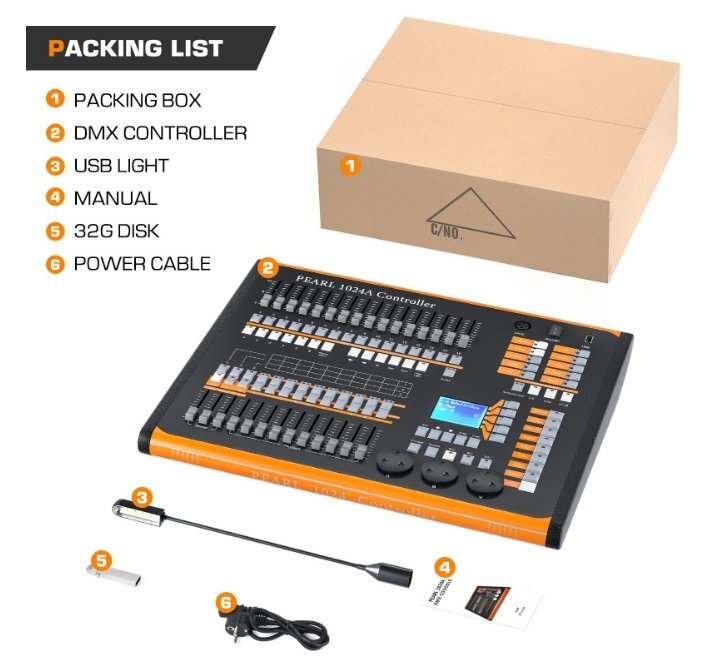 1. 512/1990 規格、最大 1024 の制御チャンネル、光絶縁信号出力 -L 制御最大 96 調光ボリュームまたは 96 チャンネル、パール ランプ ヘッドを使用。