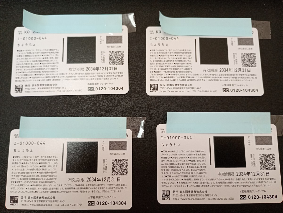 【未使用品】図書カードNEXT 4枚 額面4,000円 PIN削りなし です。