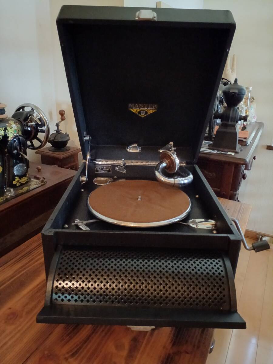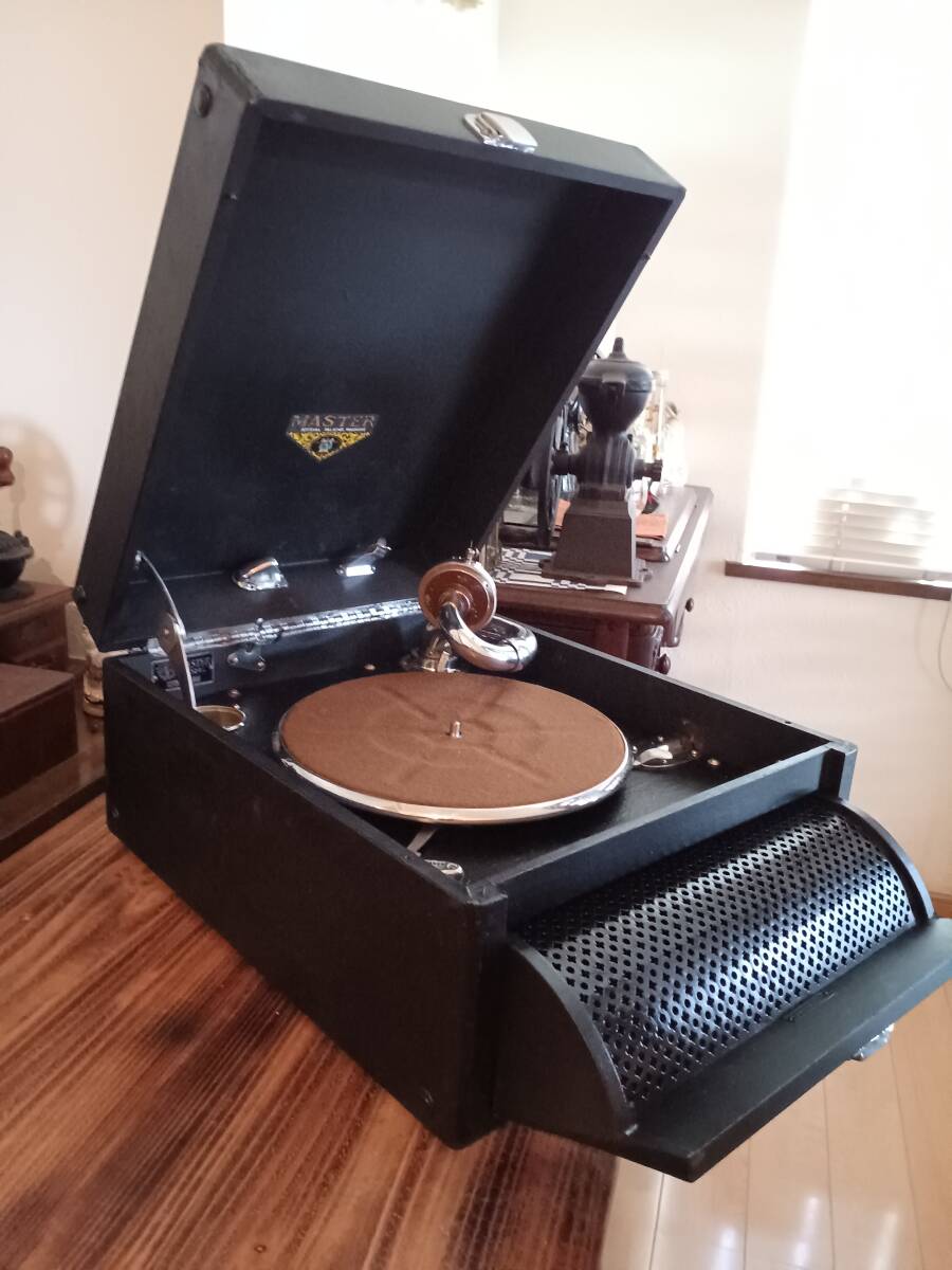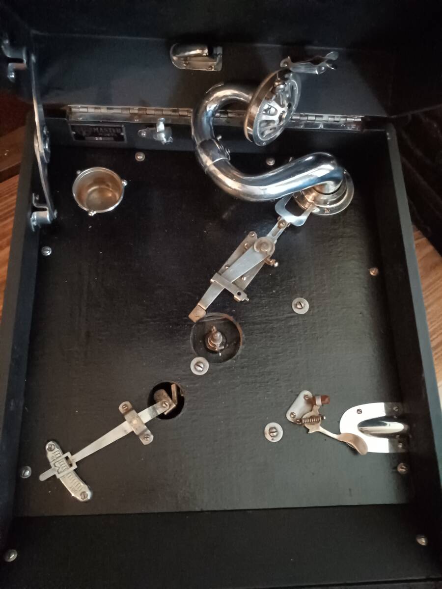 「MASTER」と言うメーカは良く分かりませんがフロントスピーカー部分の開閉方式は珍しいと思います(ゼンマイやメカの造りはビクターやコロンビアと同程度でしっかりしておりターンテーブルの高さも調整できる機能も付いています)。オーバーホールしましたので作動、演奏確認済みです(オートスタート・ストップは使用できないのストッパーで)。演奏動画をお付けしますので(但し、届いて全ての作動を保証するものではありません)画像、動画を確認頂きノークレームノーリターンの方の入札をお願い致します。動画はこちらをクリックして下さい。落札後48時間以内に連絡と3日以内の入金(入金のトラブルを事前に防ぐため)がない場合は落札を取り消しさせて頂きますのでご理解願います。以上検討の程 よろしくお願い申し上げます。 共通注意事項 ①状態が良い、悪いは私感により個人差があります。 ②スマホのオート撮影のため画質が一定しなく実際画像や動画の色合いが違う場合があります。 ③運送中の破損については誠意をもって対応します ④見落としがある場合があります。 ⑤古い物なので機械音や臭いがある場合があります。 ⑥格安出品の場合、入札金額が予定落札価格と余りにも差がある時は終了時間の5分前に出品を取消す場合があります。