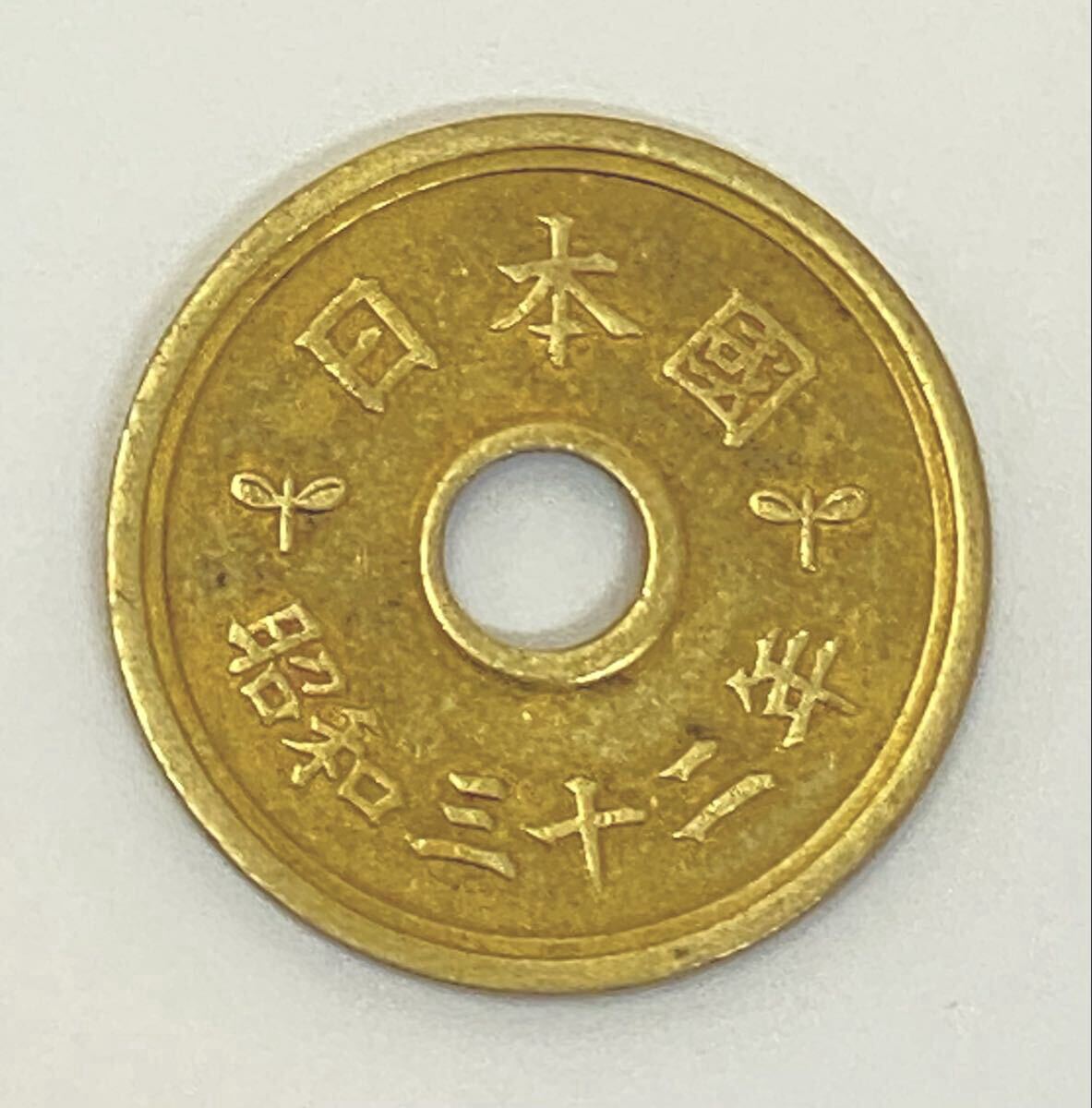 五円硬貨 昭和32年 五円玉 穴あり5円 黄銅貨