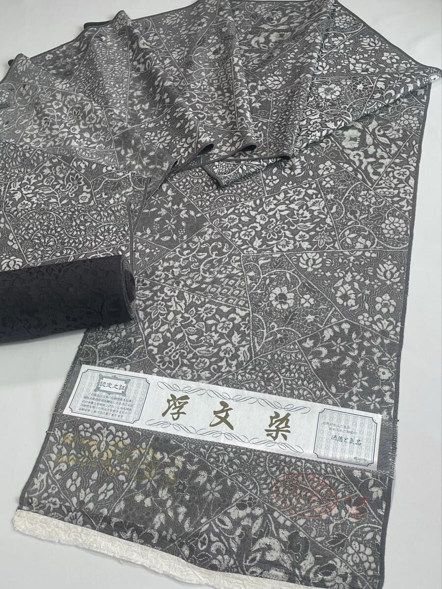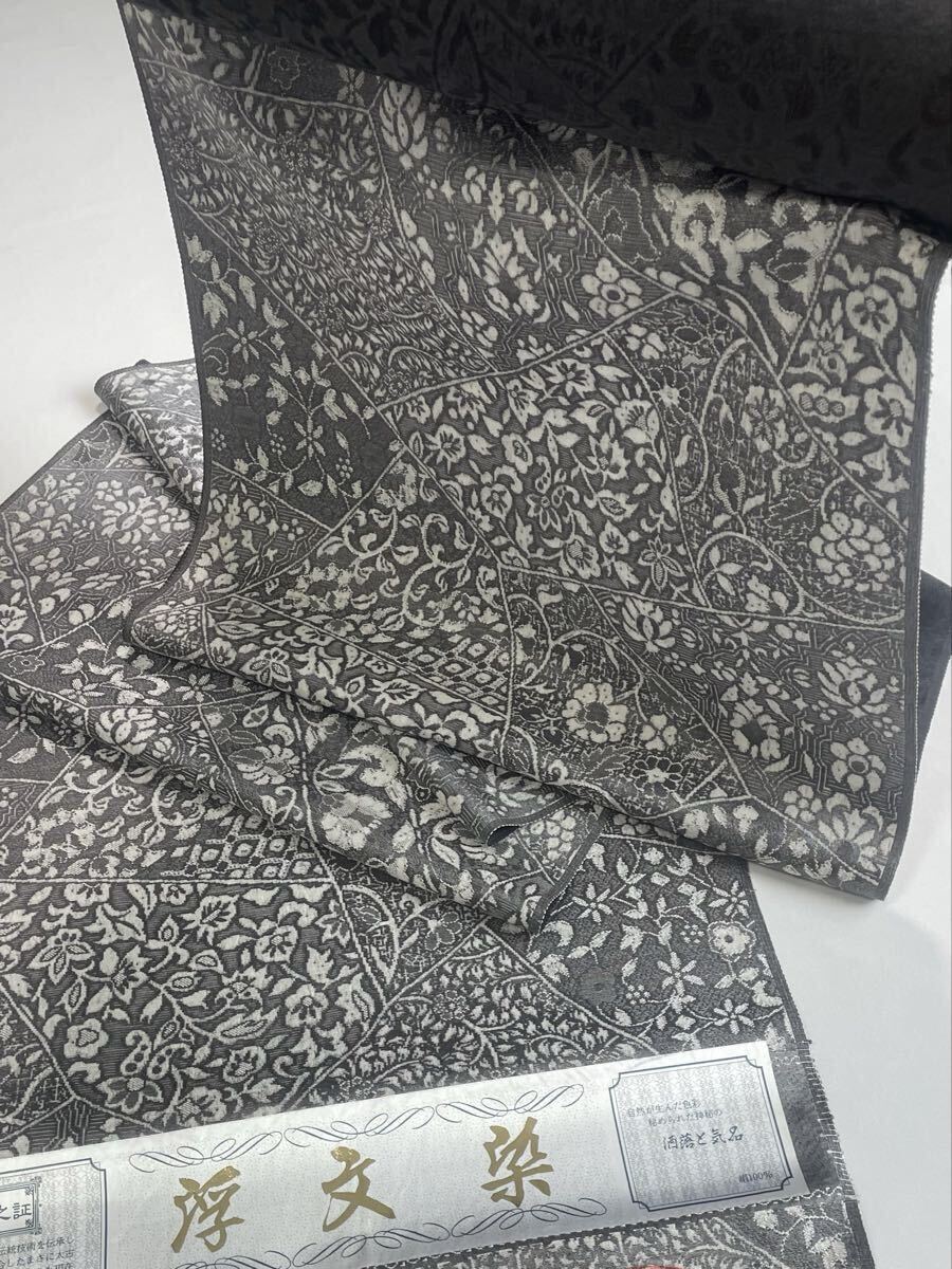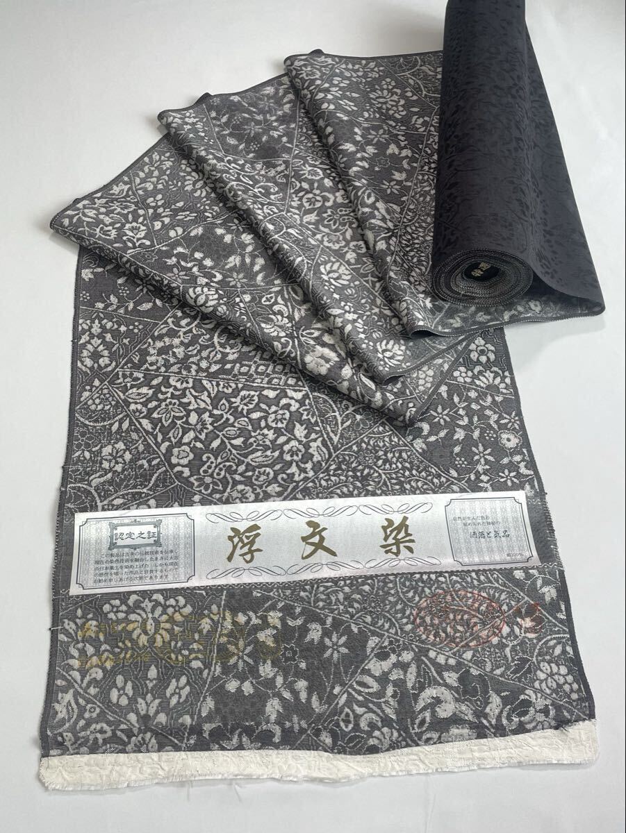 ふくれ織 小紋 反物 浮文染 紋意匠 正絹 グレー系