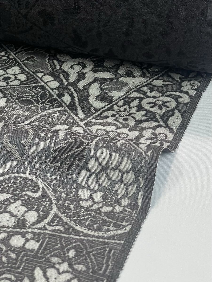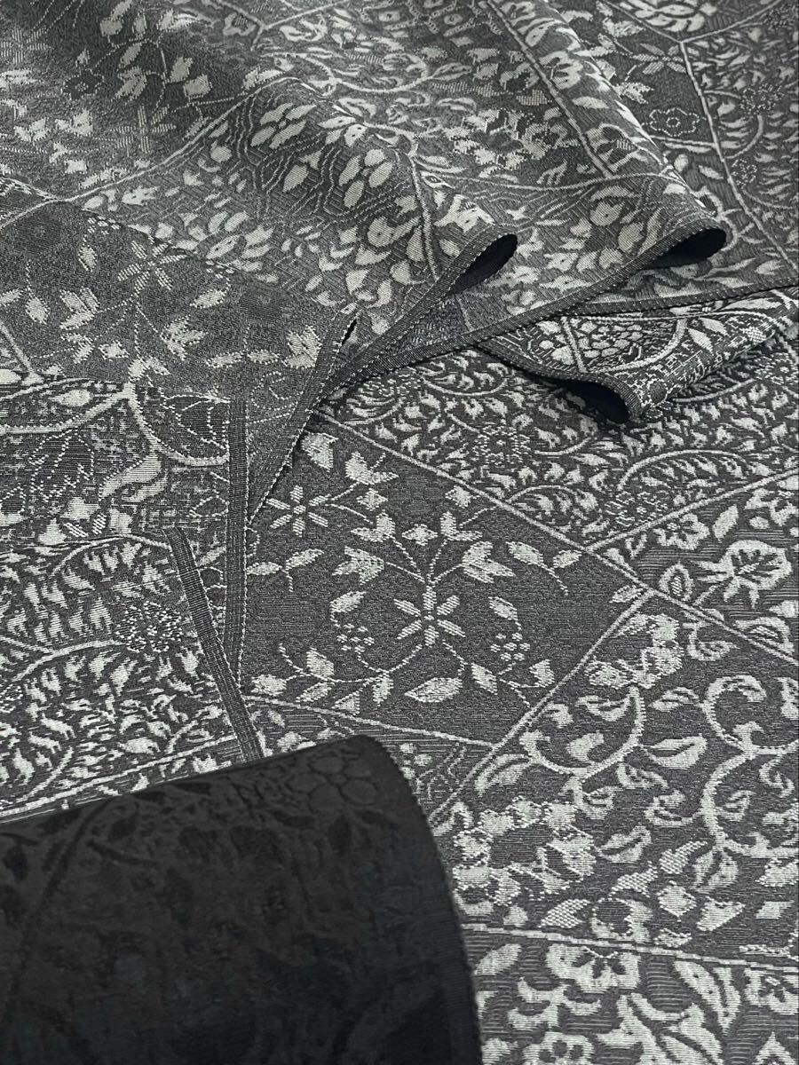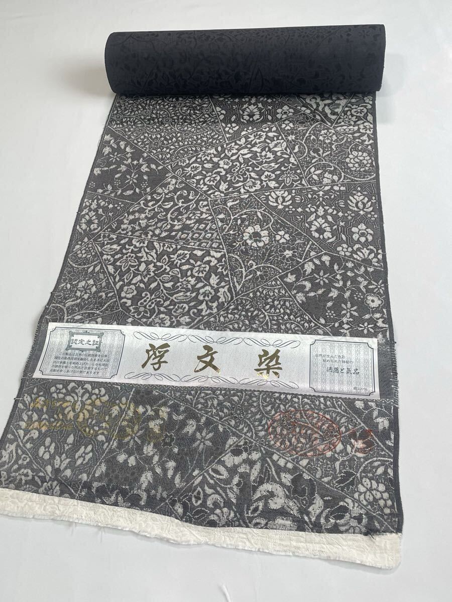 ふくれ織 小紋 反物 浮文染 紋意匠 正絹 グレー系