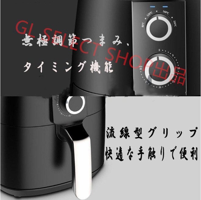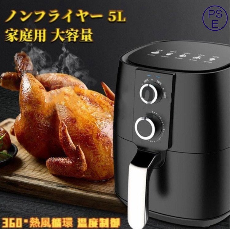 ノンフライヤー 5L 家庭用 大容量 電気フライヤー エアフライヤー 360°熱風循環 温度制御 30分タイマー 揚げ物 グリル ベーキング用
