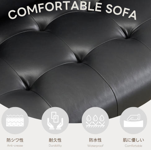 ソファー 3人掛け カウチソファ リビングソファ 肘掛け付き 枕付き おしゃれ PUレザータイプ お掃除ロボット通れる 取り外し可能な脚