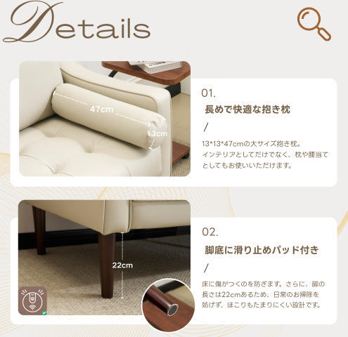 • ★【便利な円柱型クッション付き】付属のボルスタークッション2個は、枕代わりに使ったり、インテリアとして飾ったりと多用途。ソファ全体のアクセントにもなります。