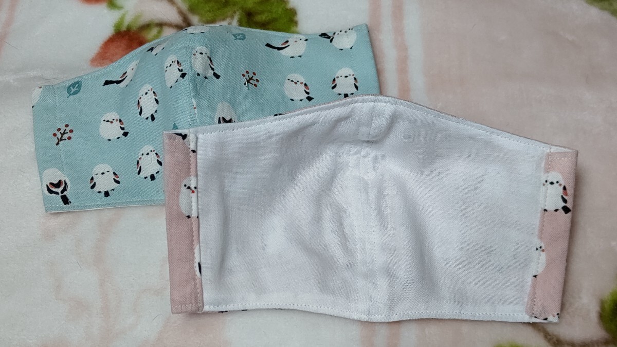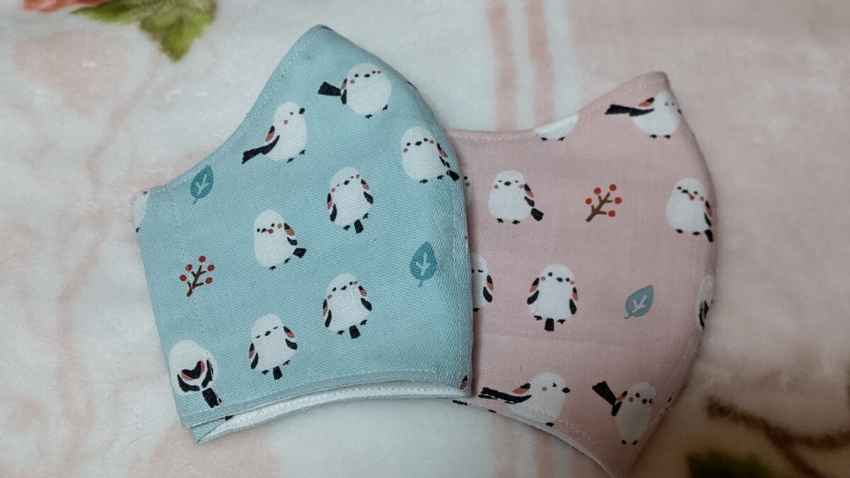 もふもふのシマエナガがめちゃめちゃ可愛いマスクです 表地は綿100%の手ぬぐい、裏地はダブルガーゼを使用しています