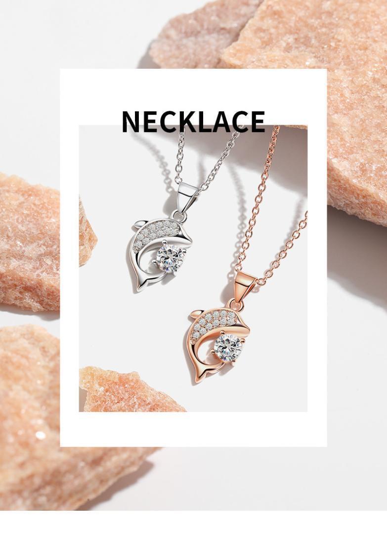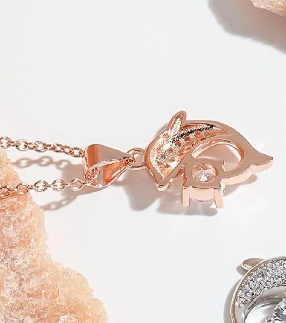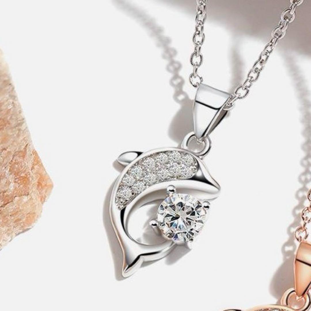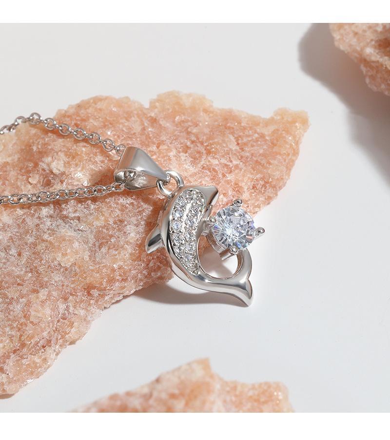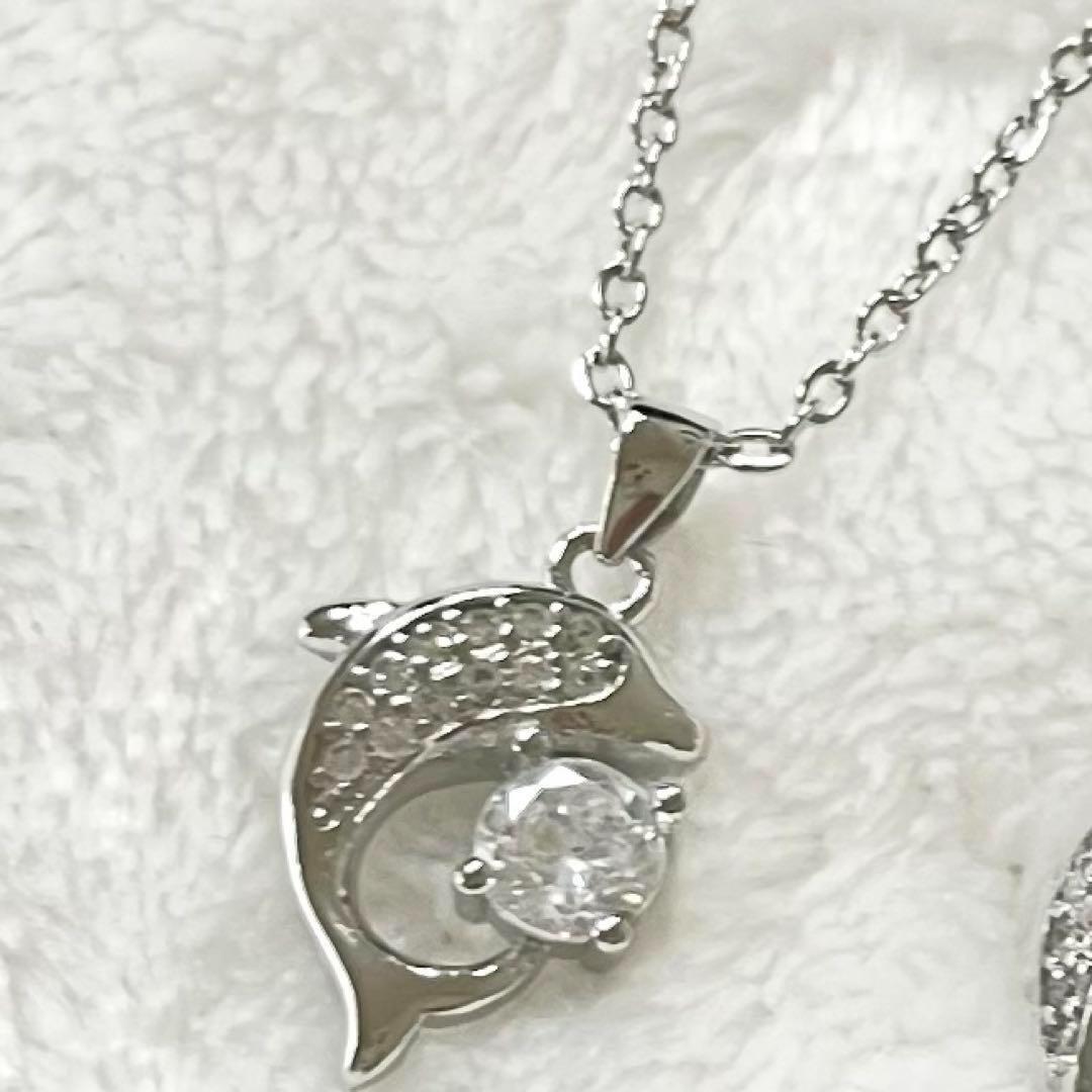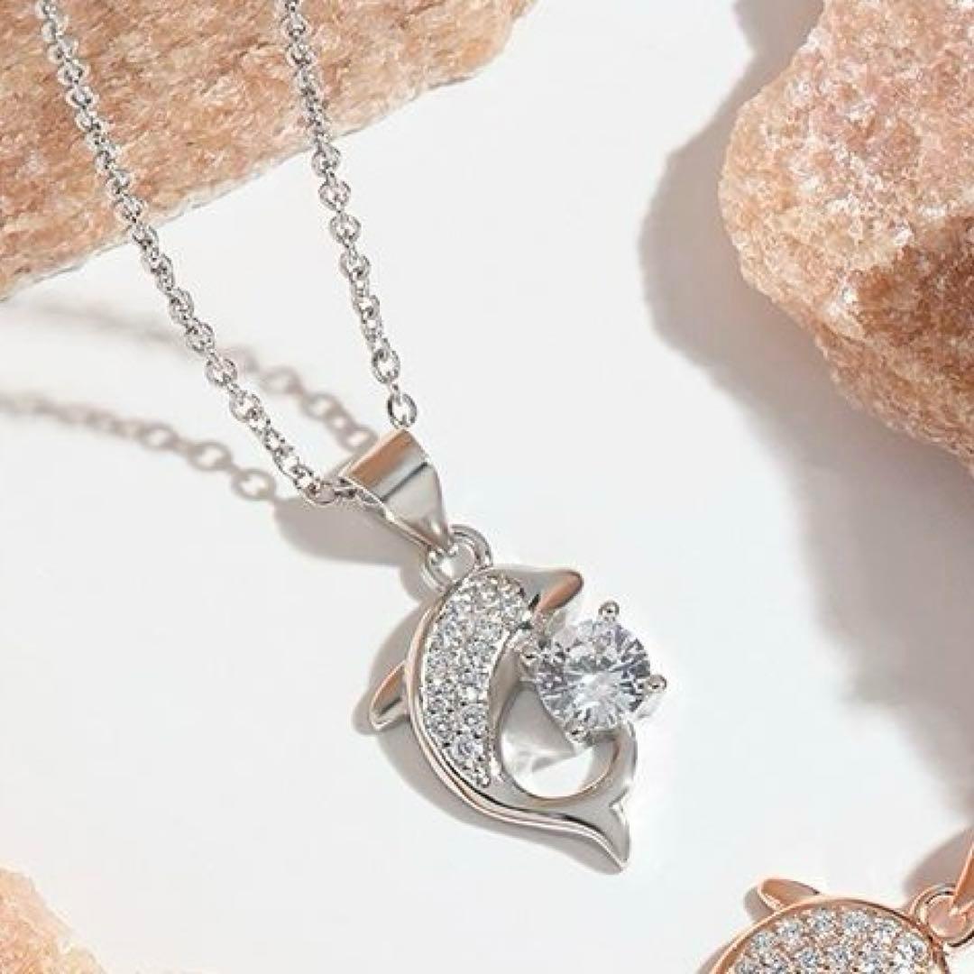 この素敵なイルカネックレスは、キラキラと輝くシルバーカラーとパヴェで女性の魅力を一層引き立て、可愛いです