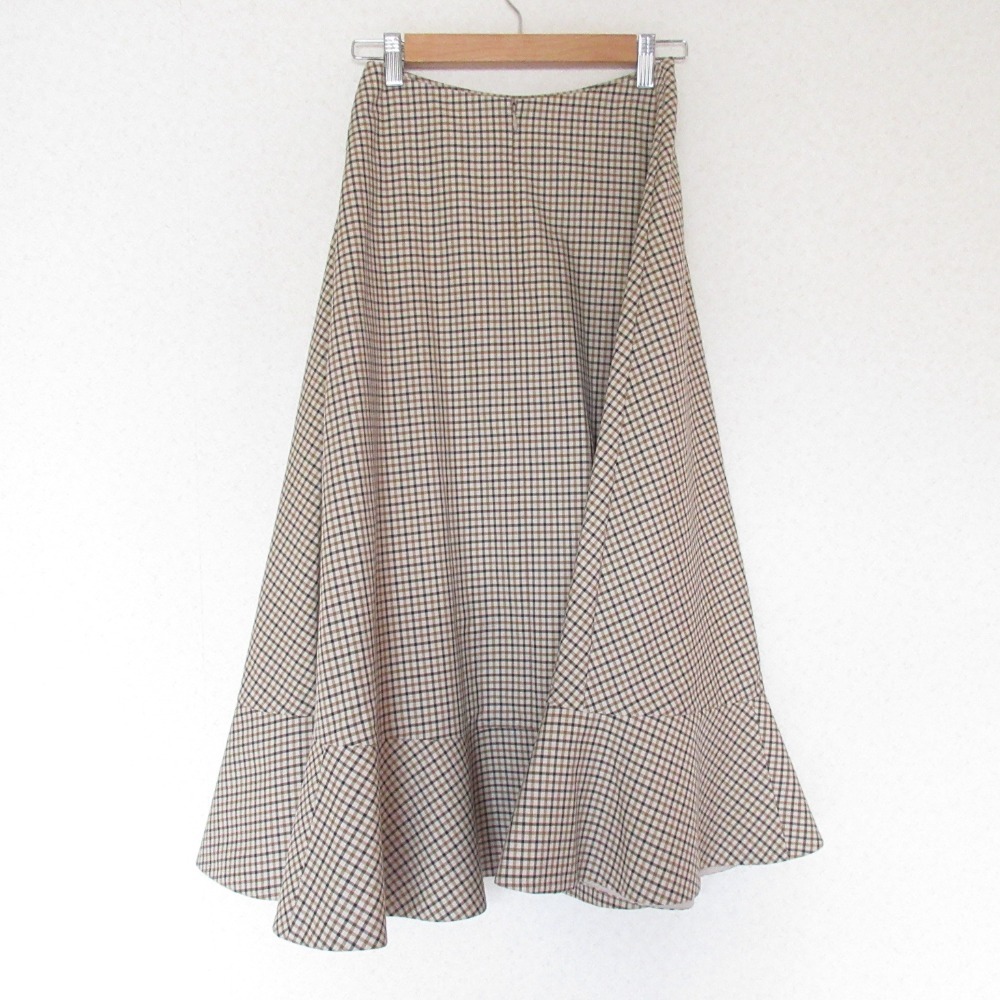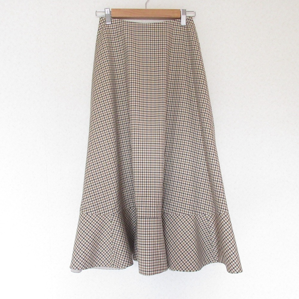 商品名:LE CIEL BLEU ルシェルブルー チェック柄 ロング フレアスカート 34 ベージュ系