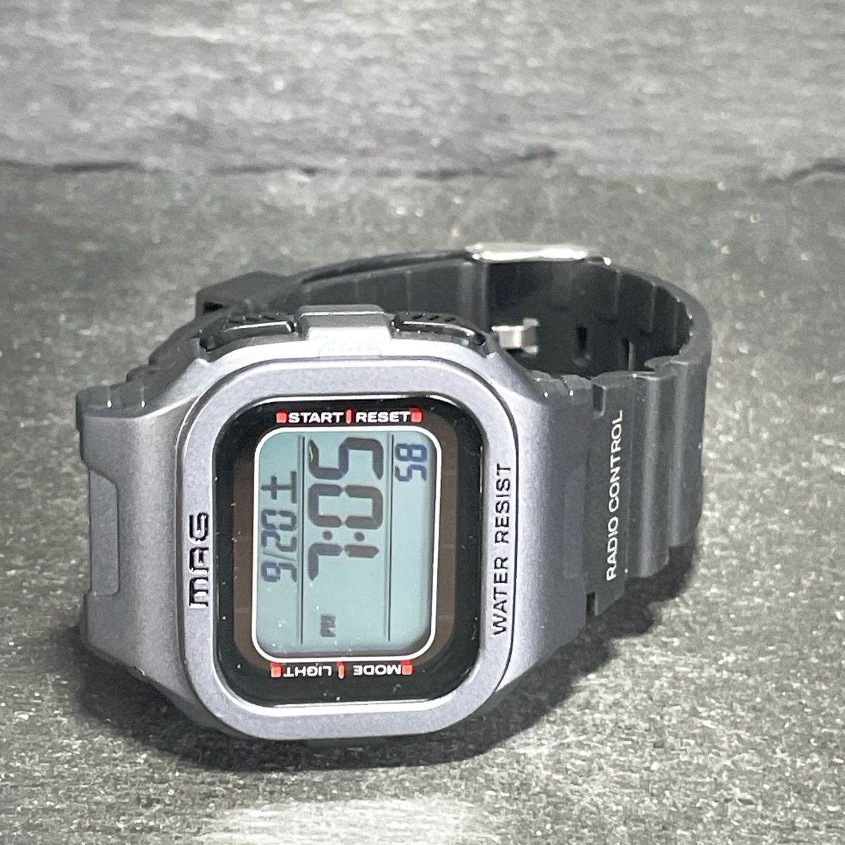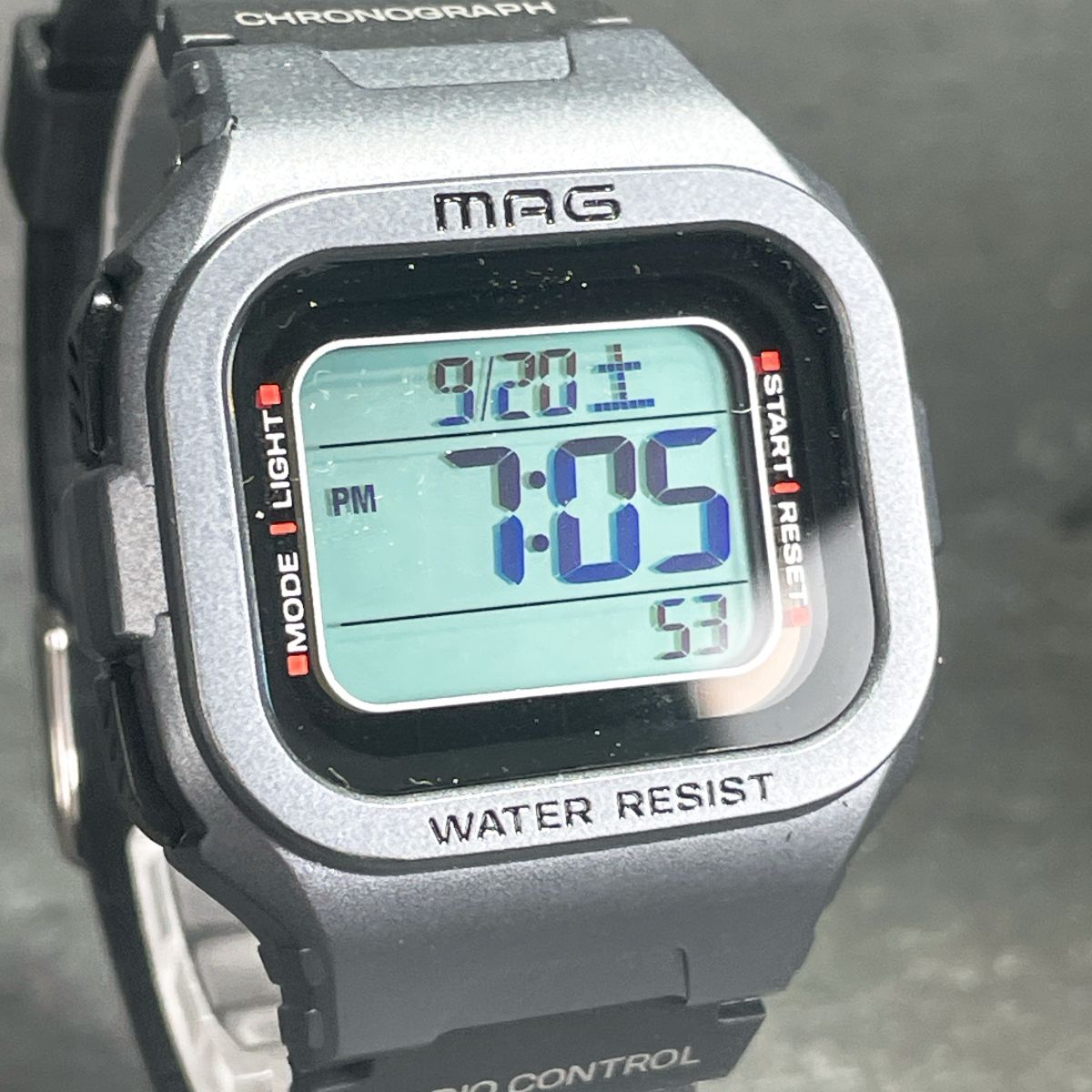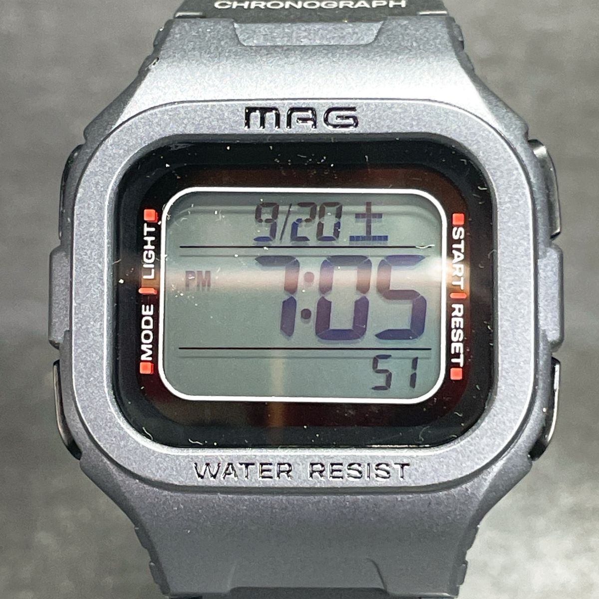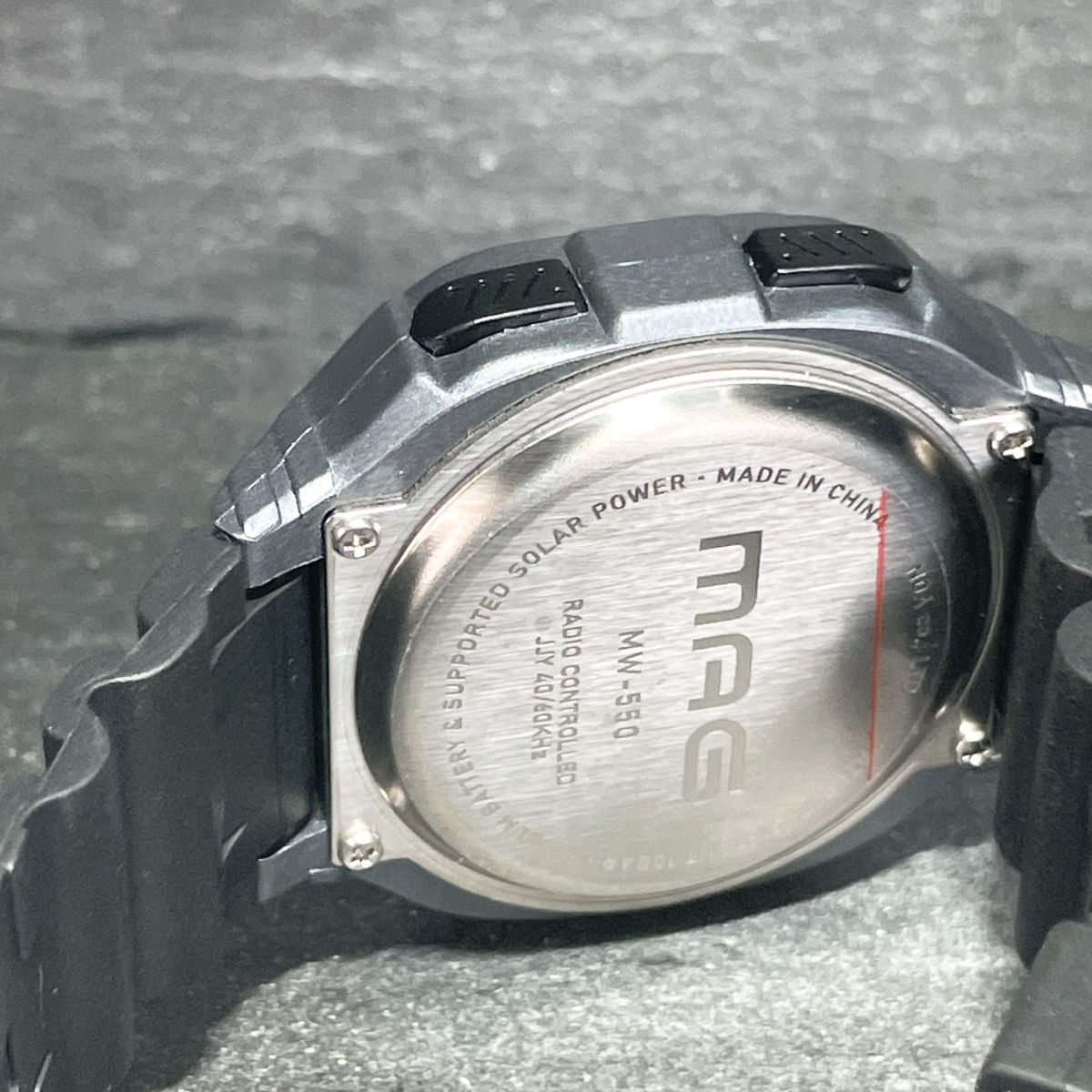 美品 MAG マグ MW-550 SM 腕時計 デジタル 電波ソーラー 多機能 カレンダー スクエア ラバーバンド グレー ブラック 動作確認済み