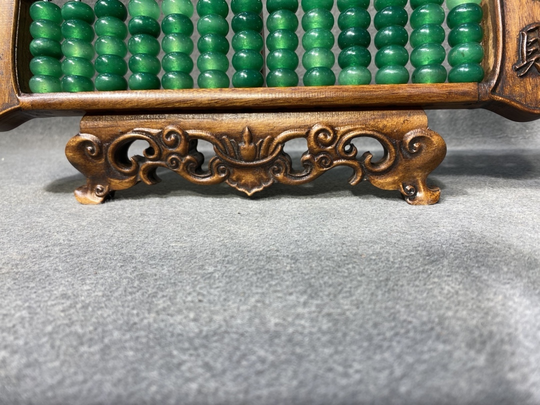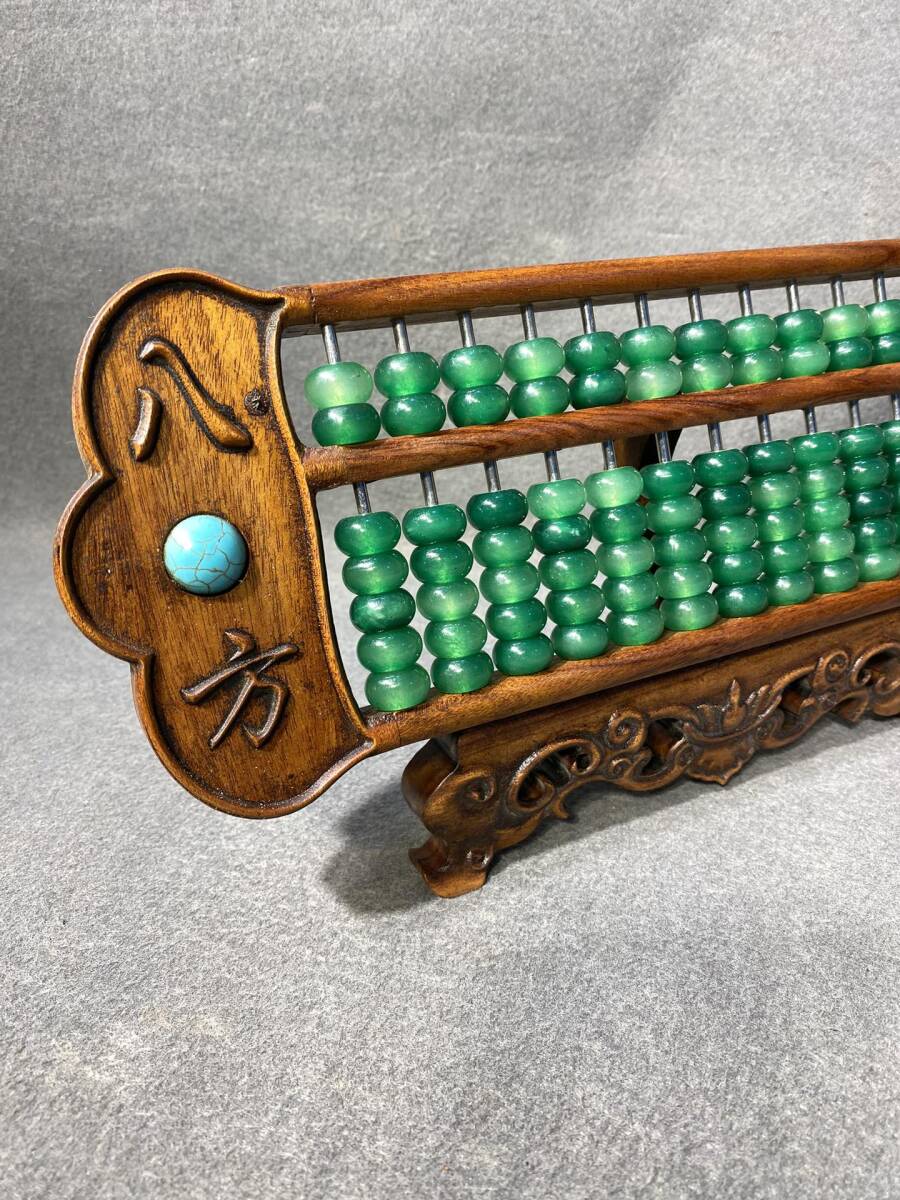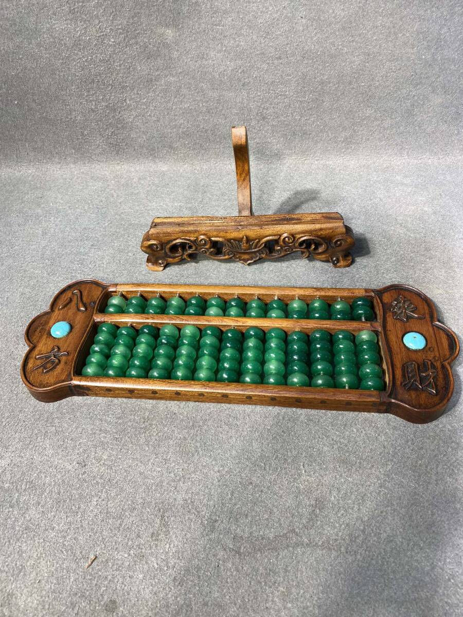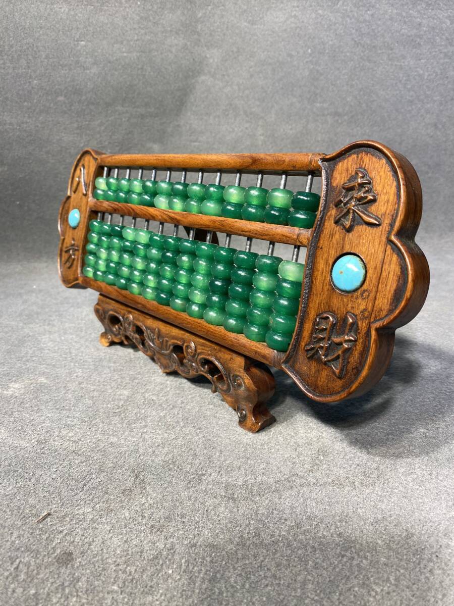 清時代 古花梨木彫 玉石嵌 算盤擺件 算盤 古玩家具 極細工 古賞物 古美味 東洋彫刻 時代物 骨董 中国古美術