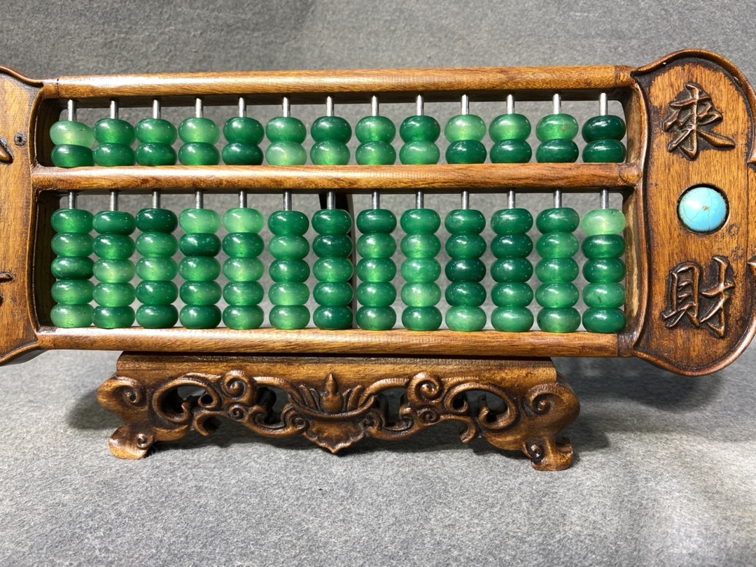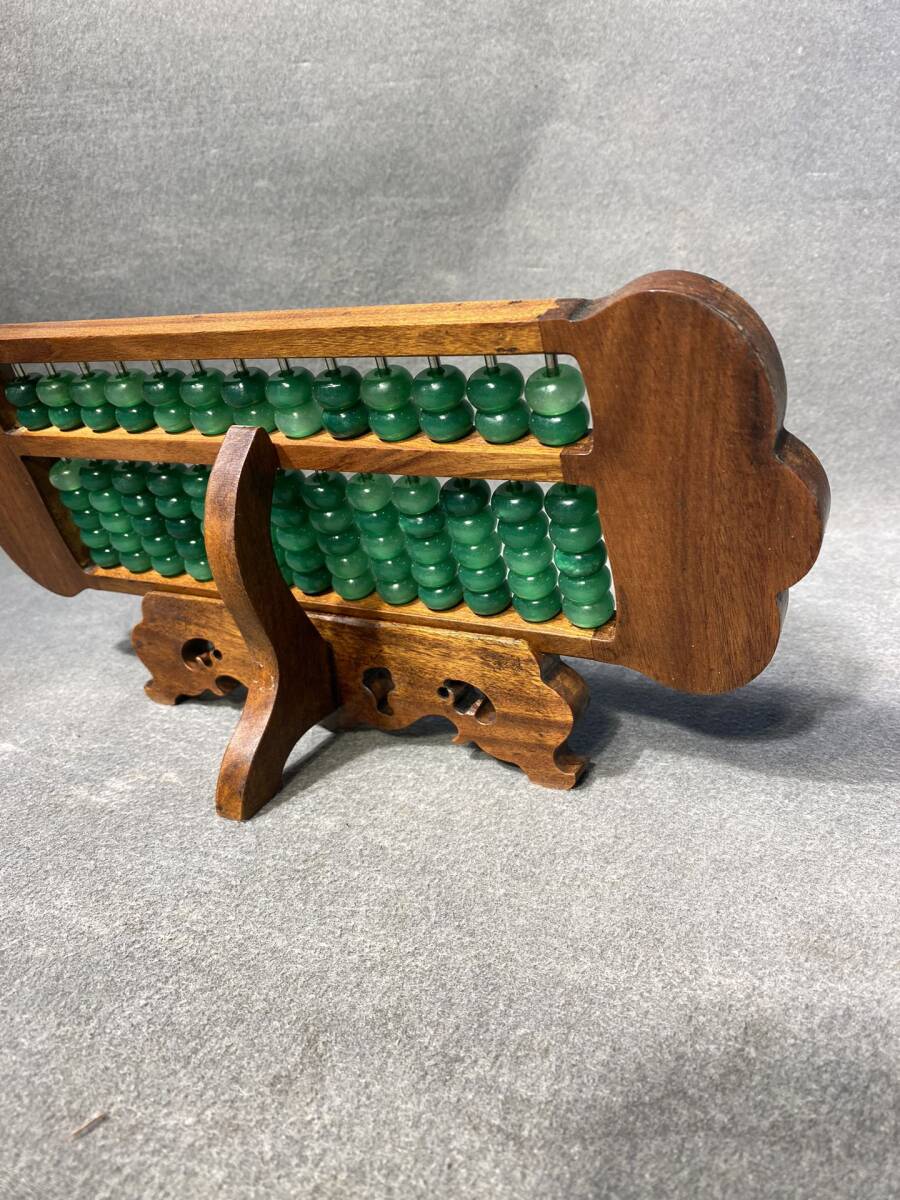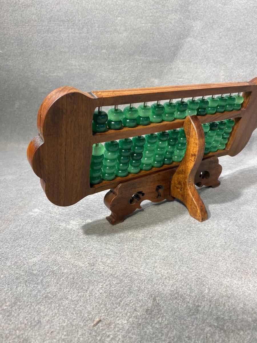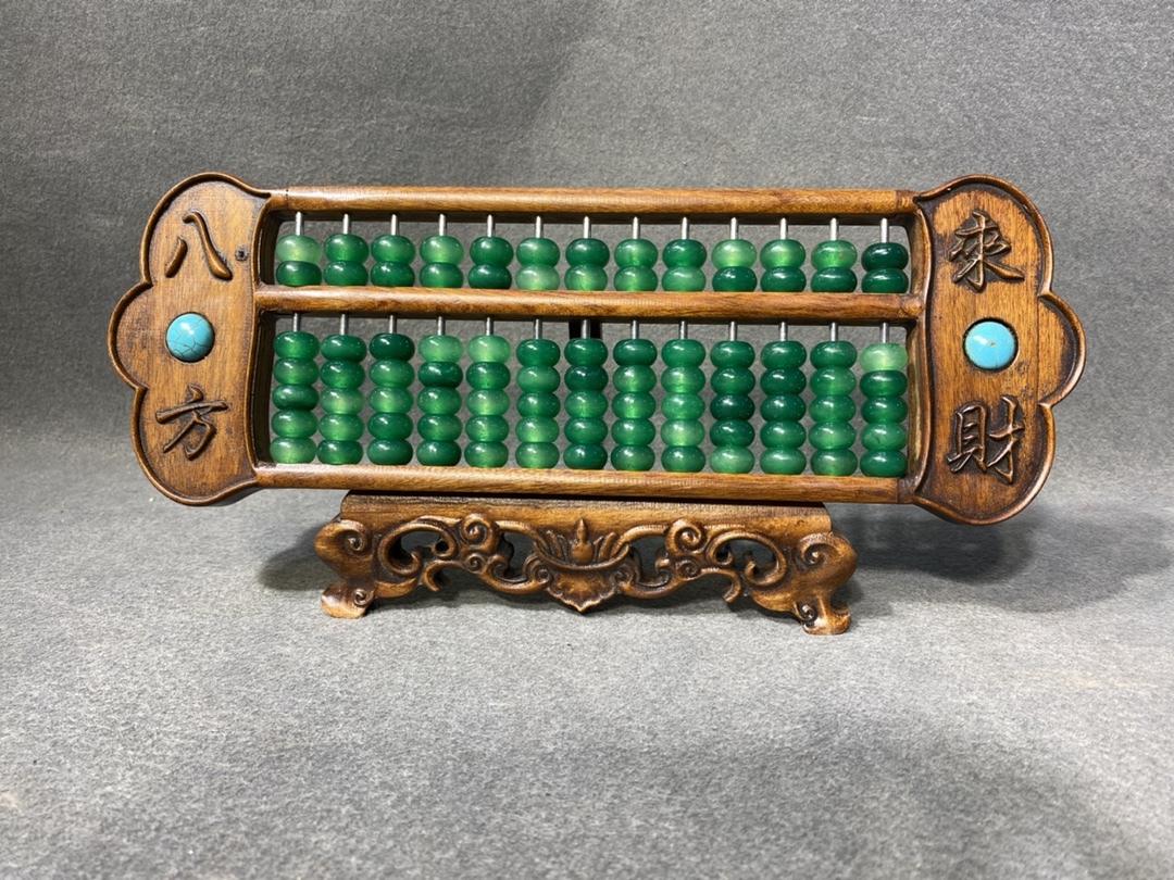 清時代 古花梨木彫 玉石嵌 算盤擺件 算盤 古玩家具 極細工 古賞物 古美味 東洋彫刻 時代物 骨董 中国古美術