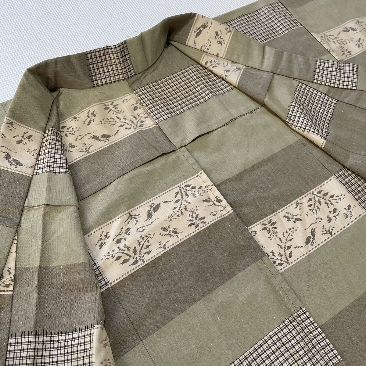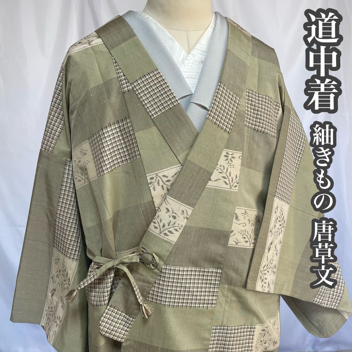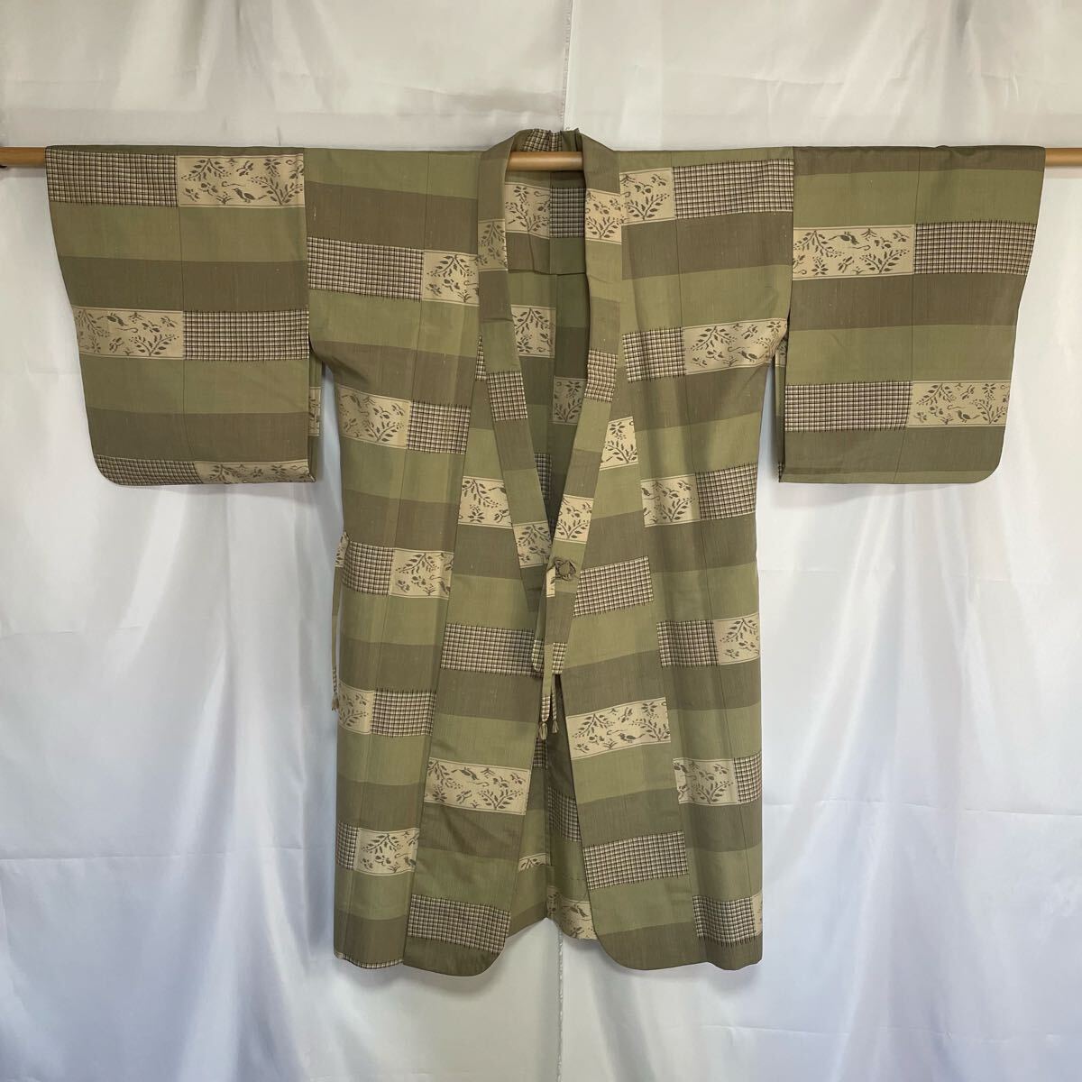 ・鳥と唐草文様がとても素敵な紬地の道中着です。 ・全体的にうっすらと茶色いシミがあります。(写真 9枚目) ・まだまだ着用していただけますので、おすすめのお着物です。 ・お安く出品致しますので、是非この機会にいかがでしょうか。 |