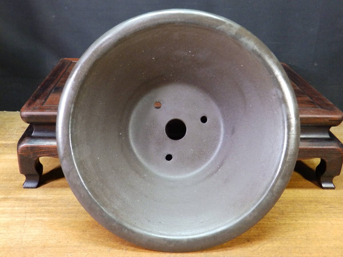 ★盆栽日和★ 和鉢 【山秋】 外縁下帯丸鉢 29.5㎝