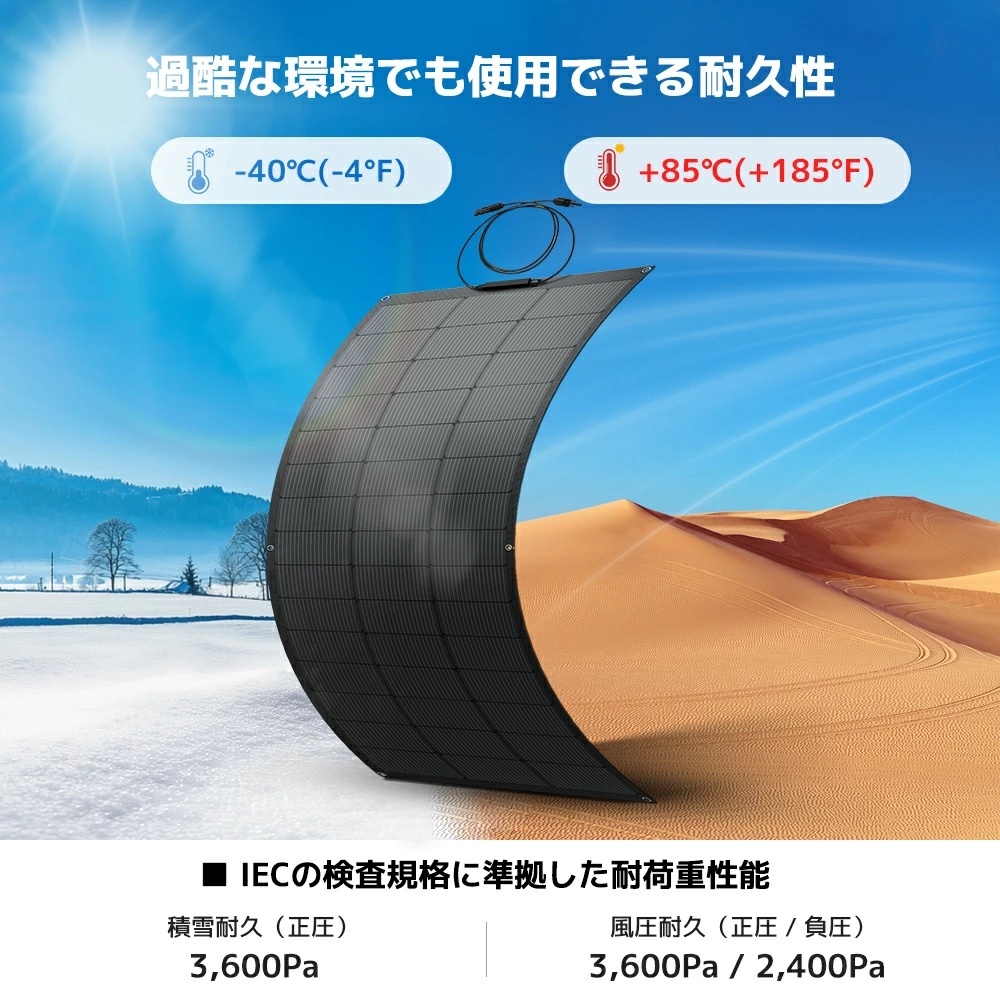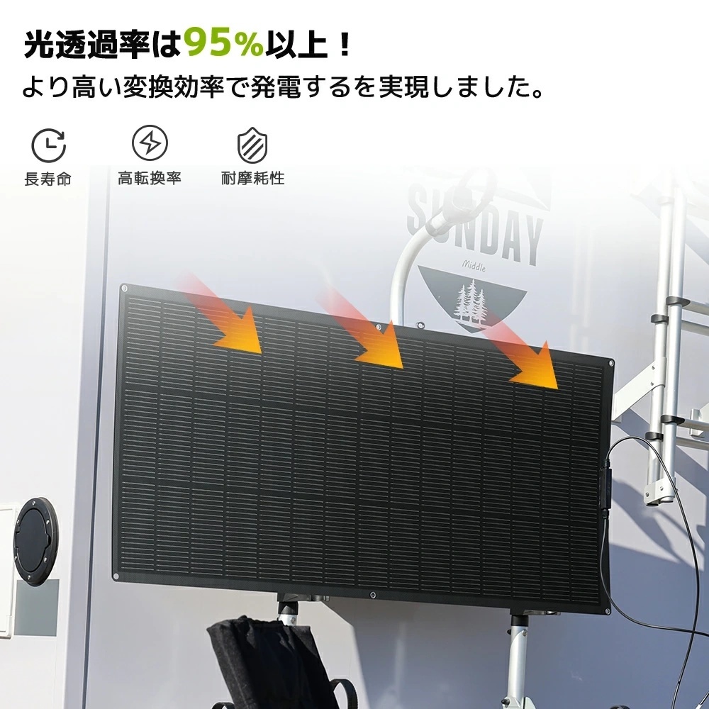 3,「最適化された電力変換」 この製品のパネルは、プレミアム単結晶と研磨されたETFEコーティングを組み合わせることで、通常の晴れた日は、電力変換効率を最大21%向上させ太陽光を最大限に有効発電します。