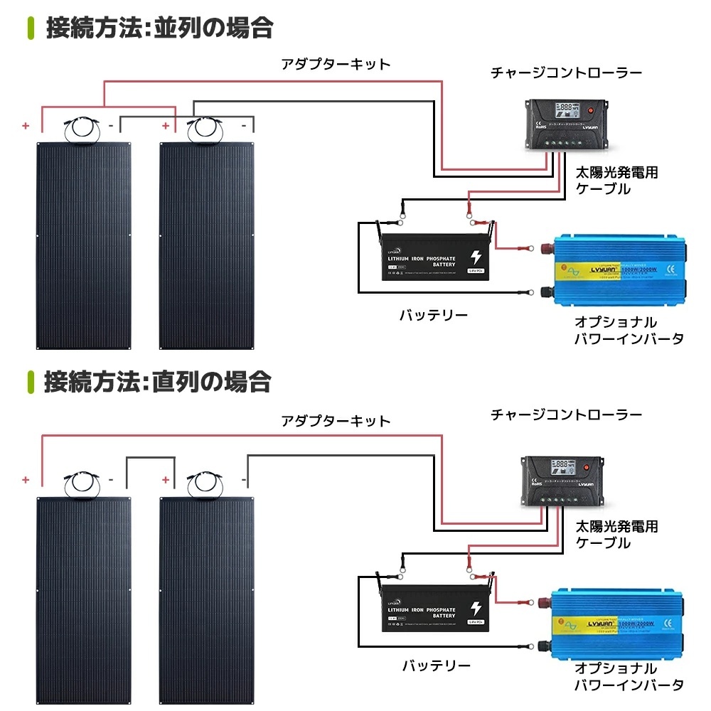 太陽光発電による充電はバッテリー寿命を2倍3倍以上にできます。