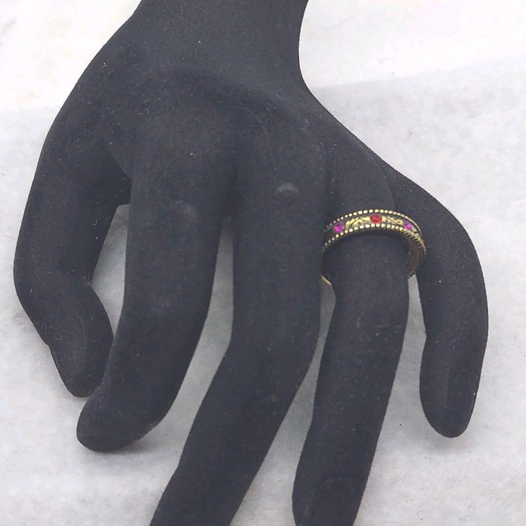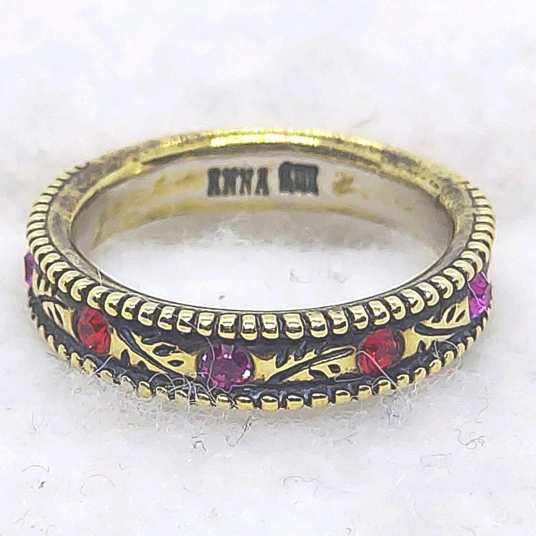 アナスイらしい個性的で幻想的なデザインのカラーストーンリングです。独特の色使いや装飾が印象的で、コーディネートのアクセントにぴったりのアイテム。ゴシックやヴィンテージテイストが好きな方におすすめです。