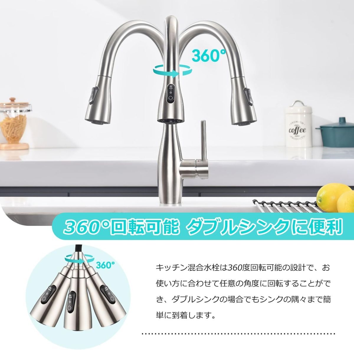 • ホース引き出し式&360度回転:ホースは約60cm引き出し可能で、シンクの内を自在に移動できます。お掃除に楽々になれます。子供の手の届かない場合、腰が痛い場合には便利です。