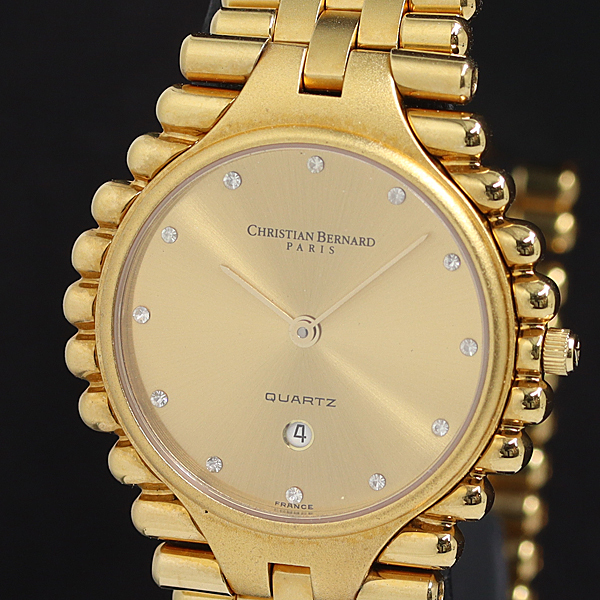 1円 稼働 クリスチャンベルナール 3310 QZ ゴールド文字盤 メンズ腕時計 9726000 9YBY SMZ