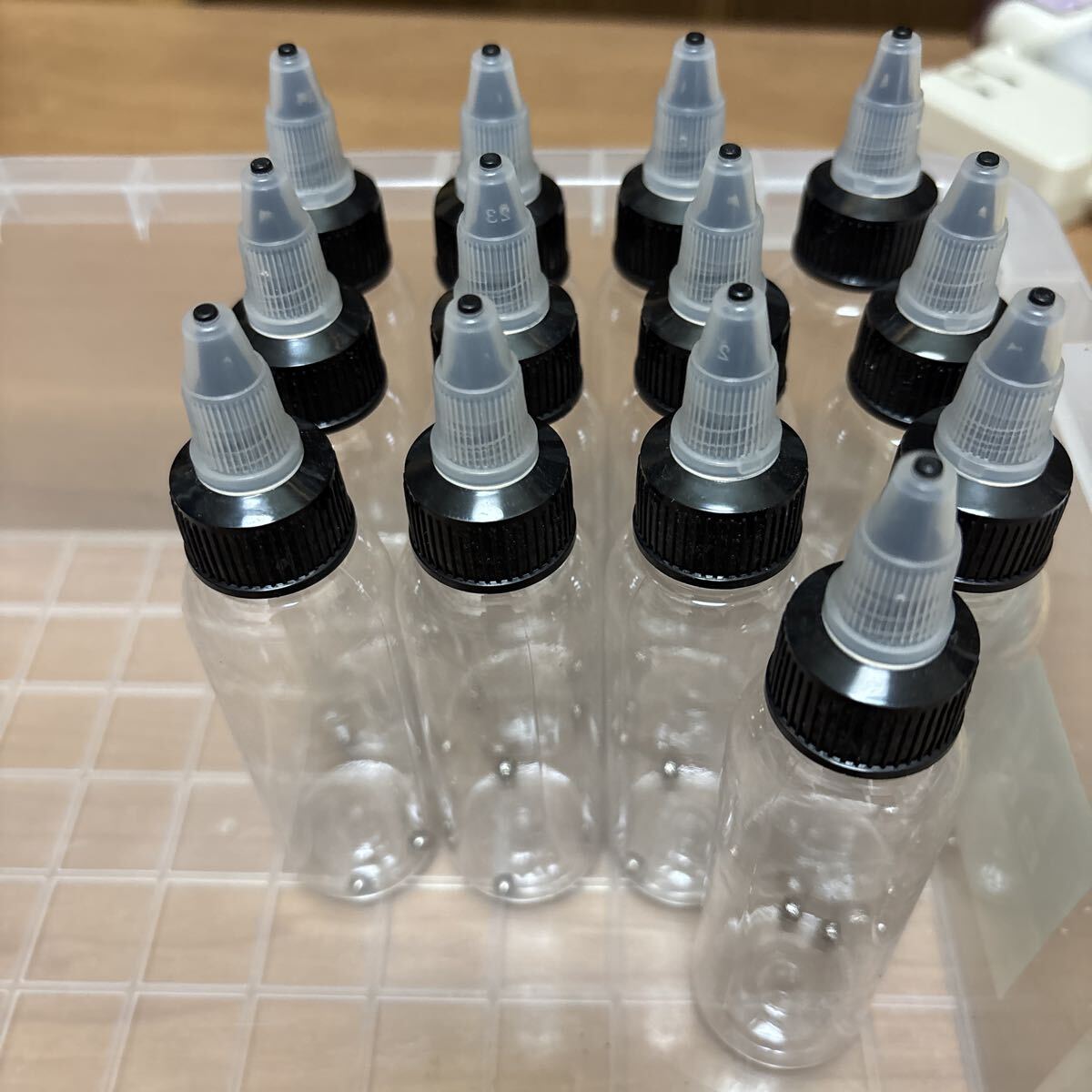 エアブラシなどに使う希釈した塗料をそのまま保管、使用できるボトルです。