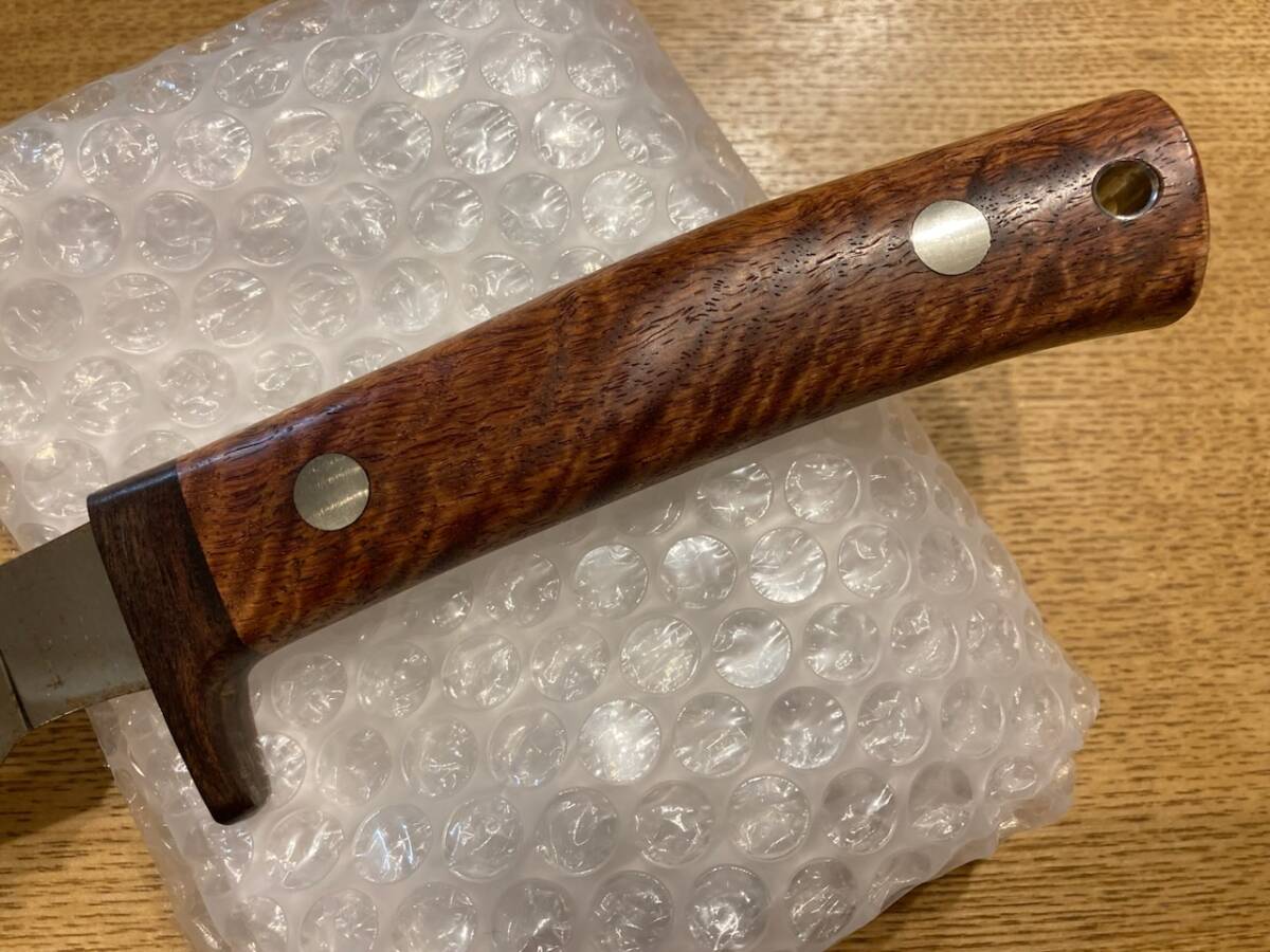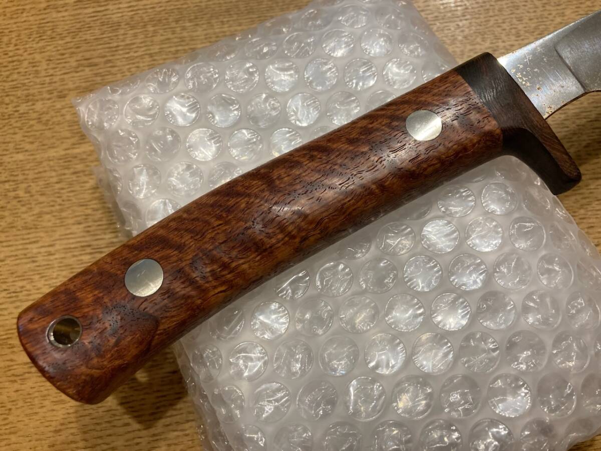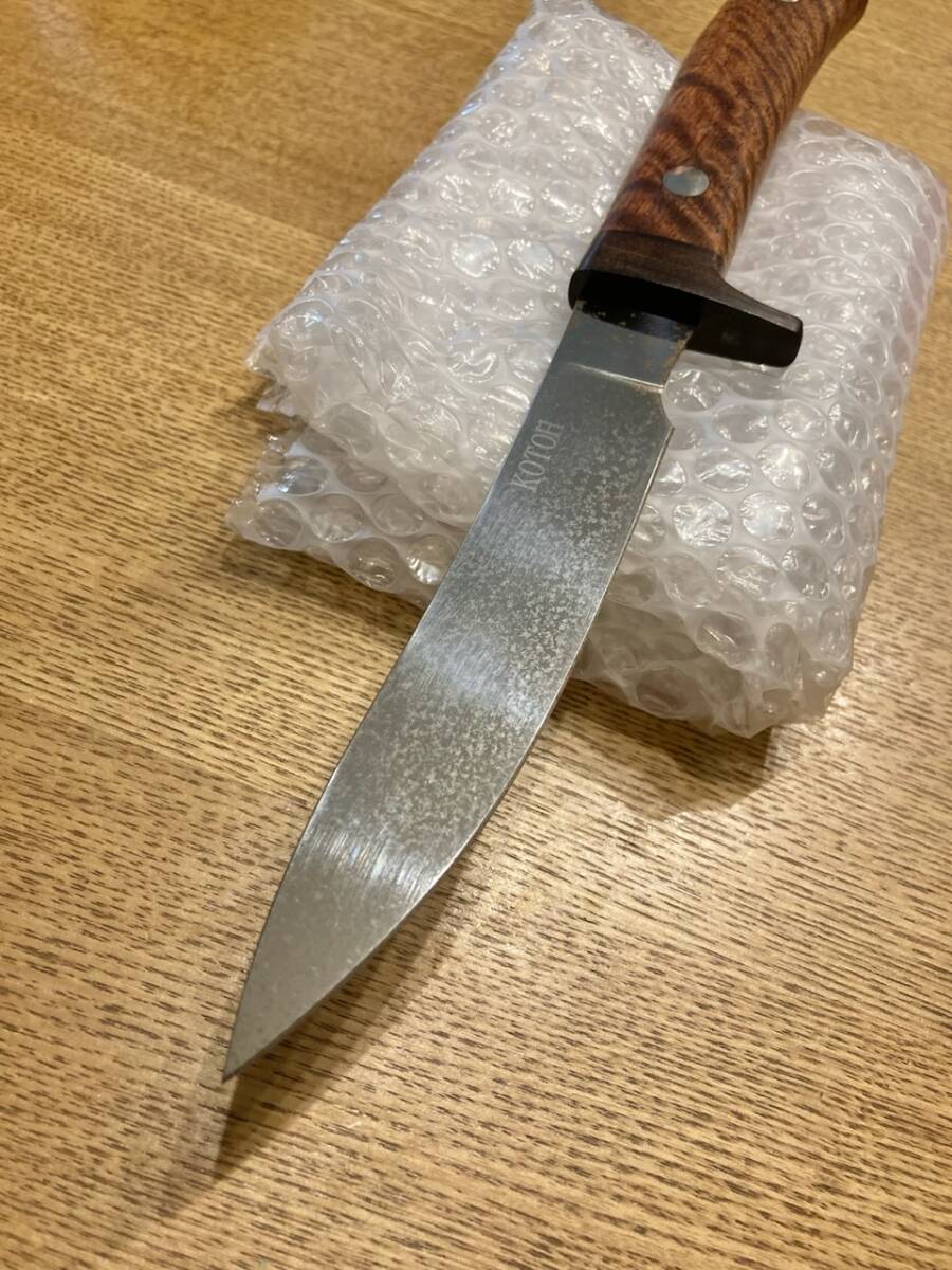 古藤好視さんのカスタムナイフです。全長285ミリくらいでシースはありません。目立つサビやくもりがあります。