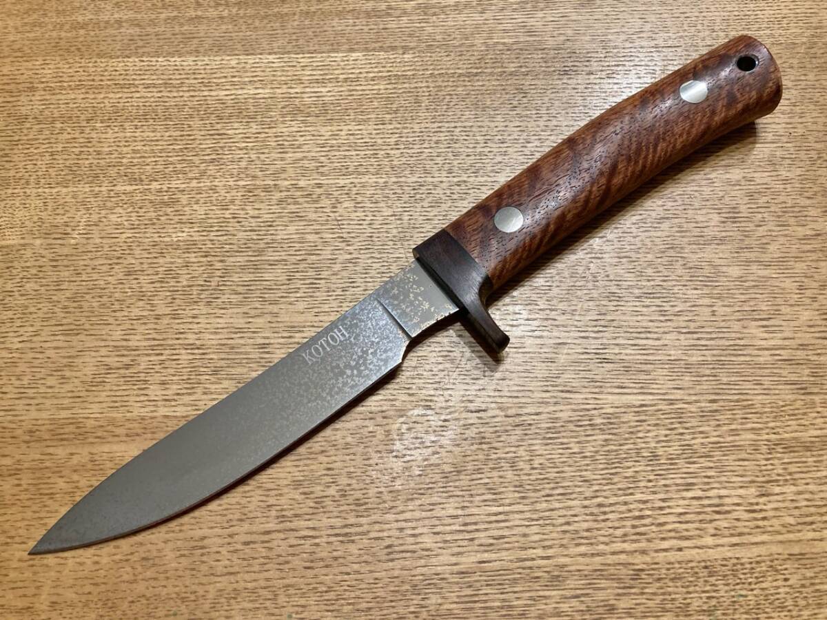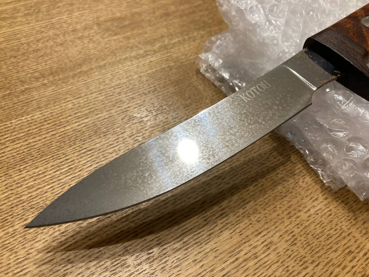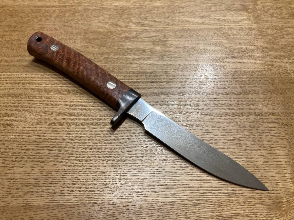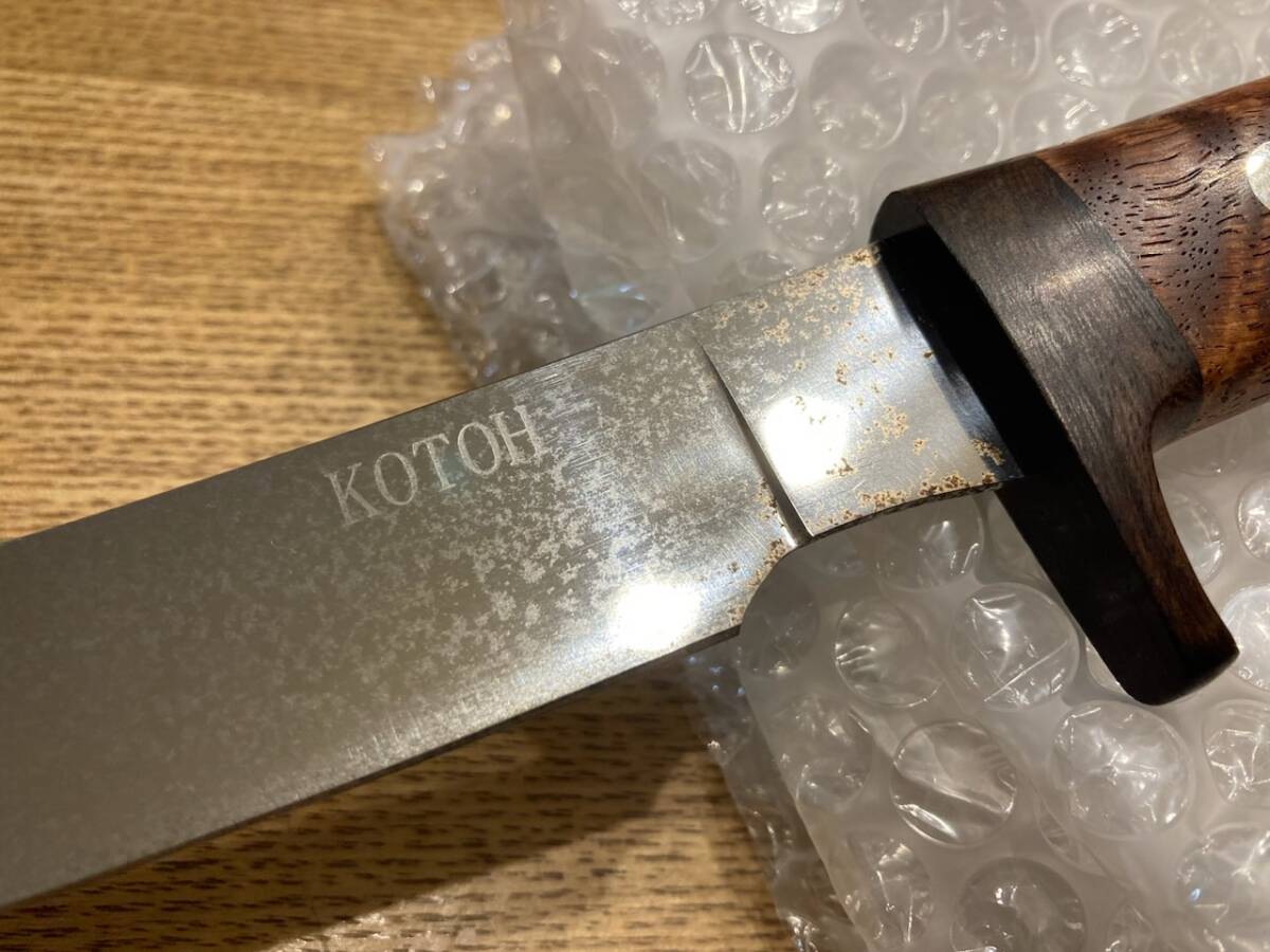 古藤好視さんのカスタムナイフです。全長285ミリくらいでシースはありません。目立つサビやくもりがあります。