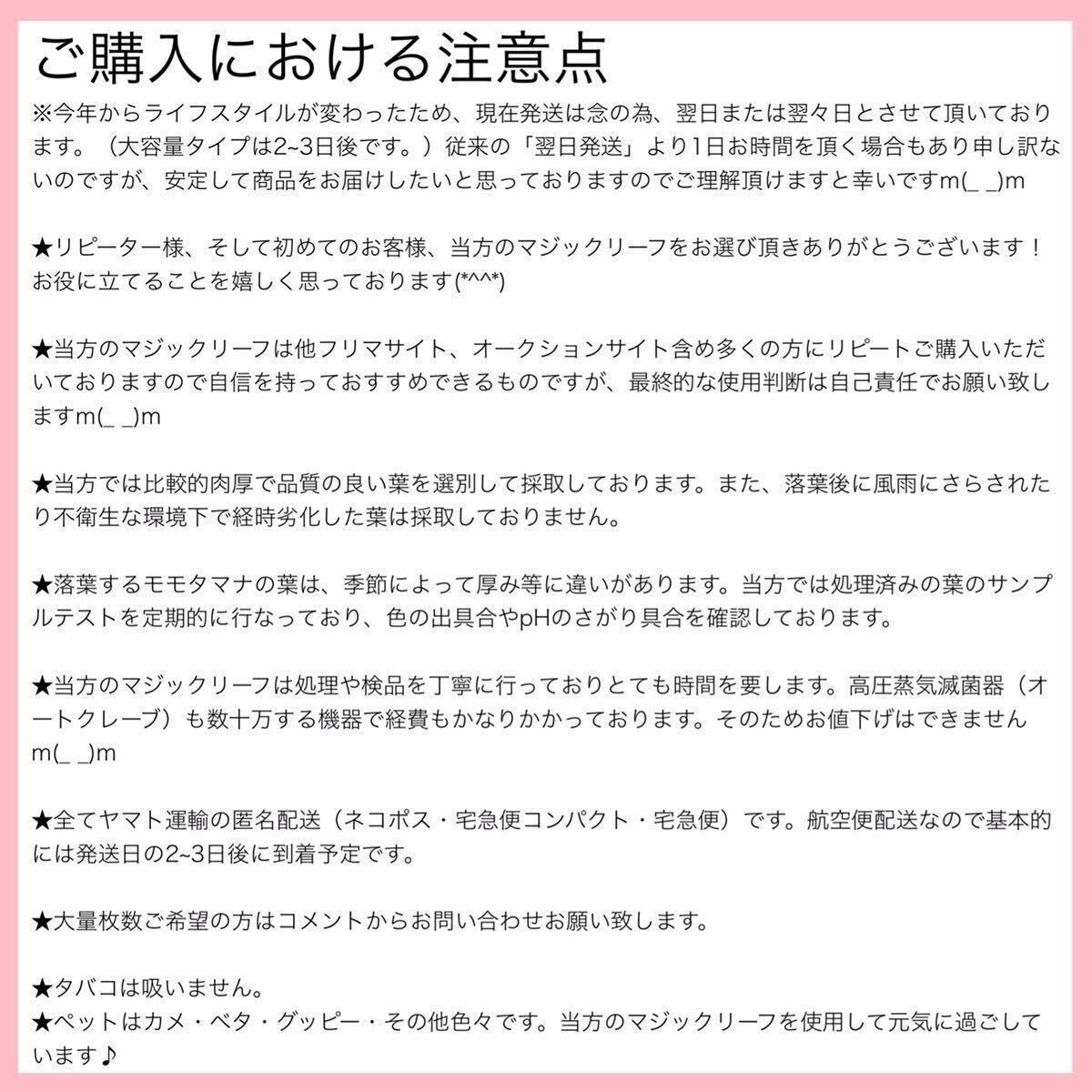 ・一般的にマジックリーフは水20Lに対して20cm程の大きめの葉1枚が使用目安です。