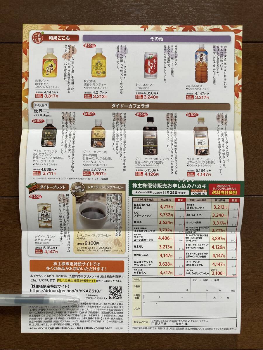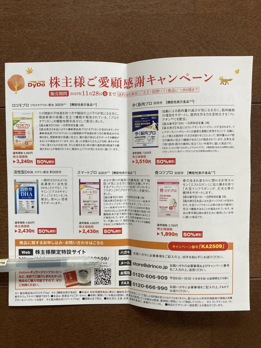 DyDo ダイドードリンコ通販 特別割引価格になる株主優待チラシ