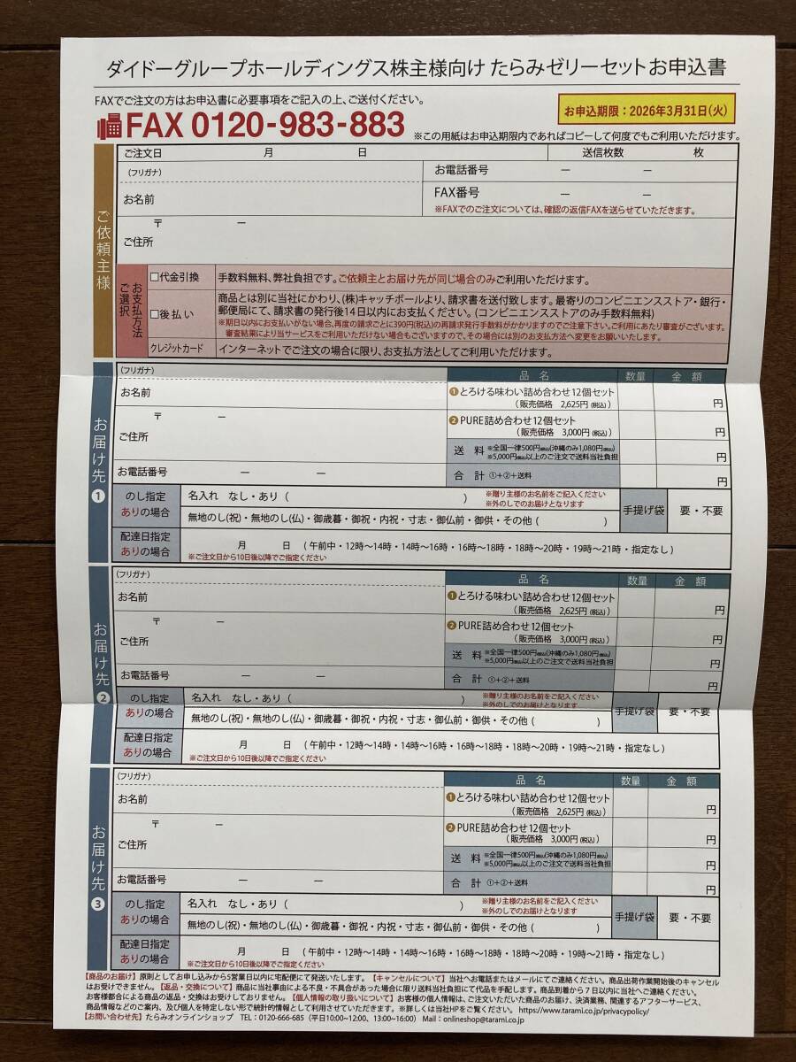 ③たらみのゼリーセット25%割引のチラシ兼注文用紙