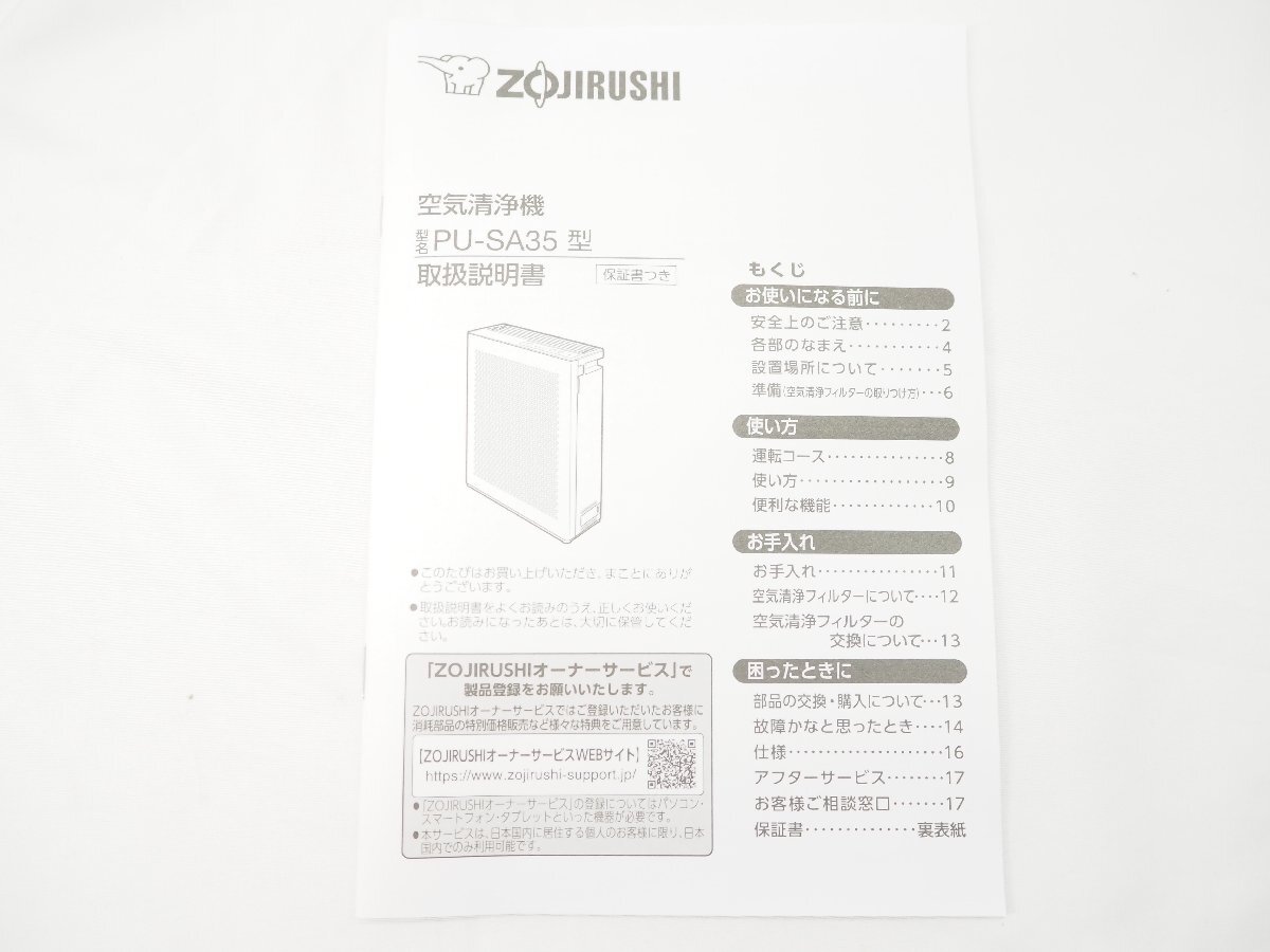 商品名 | ◆646◆【未使用】 ZOJIRUSHI 象印 空気清浄機 PU-SA35 2023年製 | |