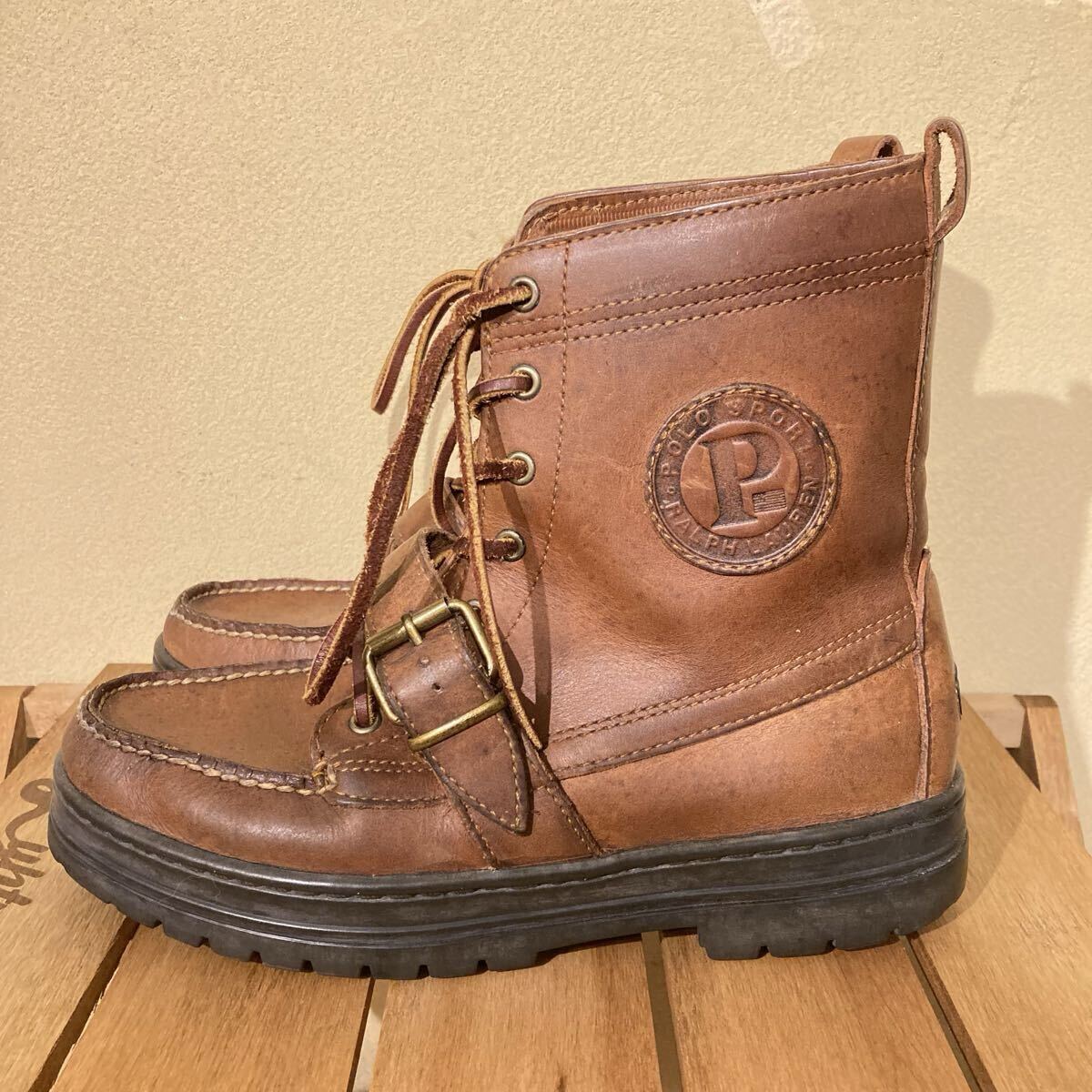 ★送料込み★ 90's ヴィンテージ 古着 POLO SPORT ポロスポーツ ラルフローレン レザーブーツ ストラップ付 編み上げブーツ