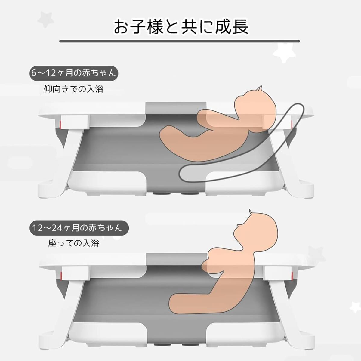 「高品質素材」この折りたたみ可能なバスタブは、新生児から幼児(0-36ヶ月)をお供するために設計されています。当社のベビーバスは、安全で弾力性があり、無臭でかじりにくい優れたPP+TPE素材で製造されており、赤ちゃんの肌に優しいです。