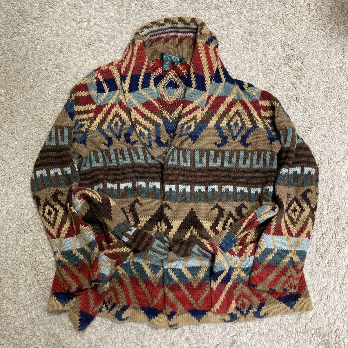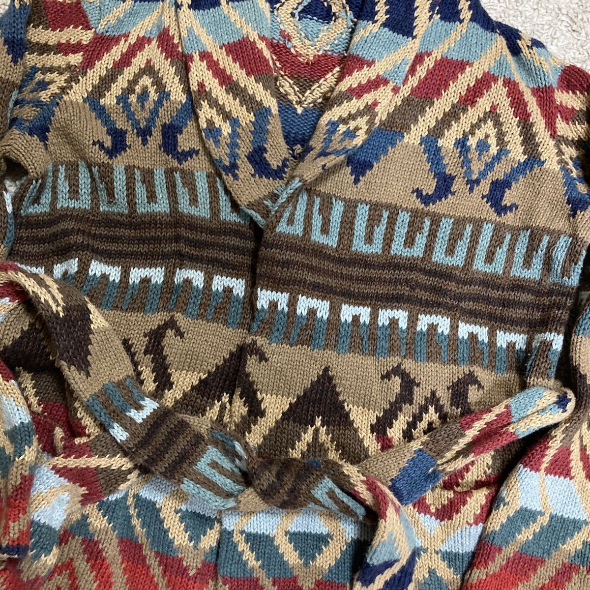 ラルフローレン ネイティブ ハンドニットカーディガンです。ハンドニットなので一本一本職人さんが手編みしています。