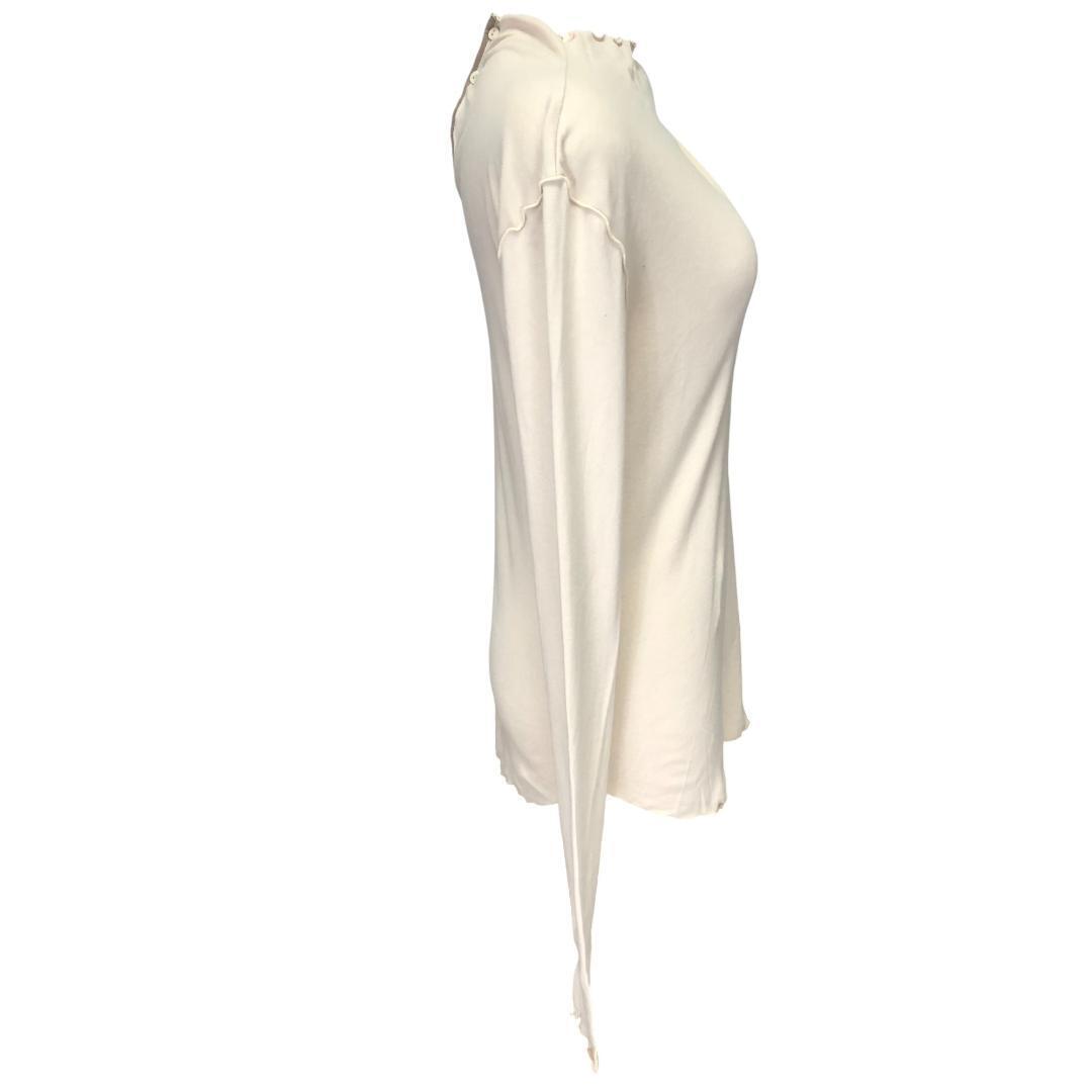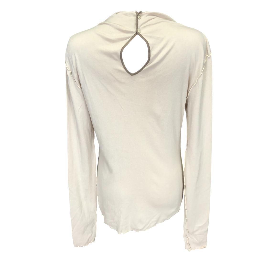後ろのキーホールデザイン(縦11cm)が特徴的な長袖カットソーです。柔らかな肌触りの良い素材で、快適な着心地です。後ろ首元のボタンで開閉でき、後ろ姿もおしゃれに演出します。普段使いからきれいめカジュアルまで幅広く活躍します。