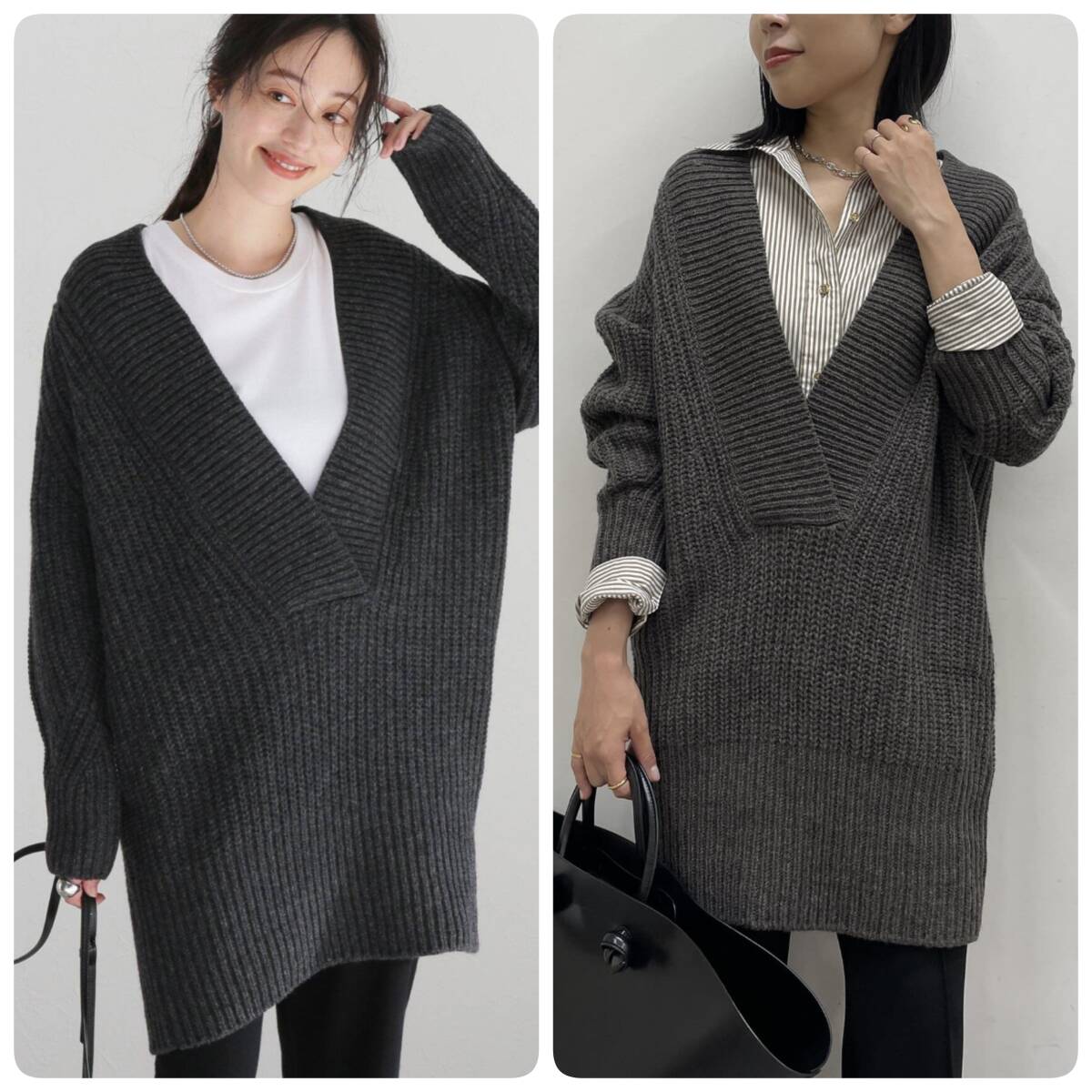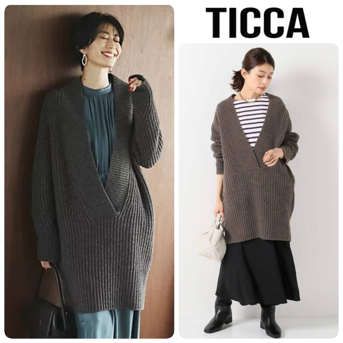 eclat掲載◆新品 TICCA ティッカ Vネック チュニック ニット ワンピース 定価35,200円