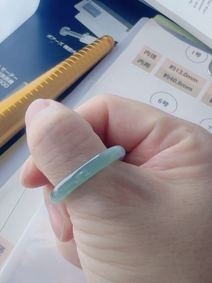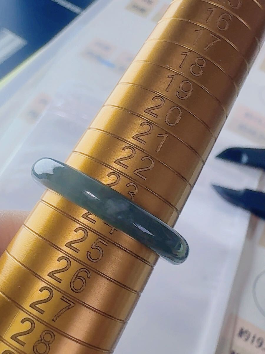 R2-02175天然本翡翠《本物保証》 藍水翡翠 指輪約23~24号 一点物 希少 縁起物 お守り 魔除け 昇進 成功 風水 金運 財運 幸運 幸福
