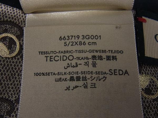 ■新品同様■ GUCCI グッチ ホースビット GG柄 シルク100% ツイリー リボンスカーフ ブラウン系 FR2126