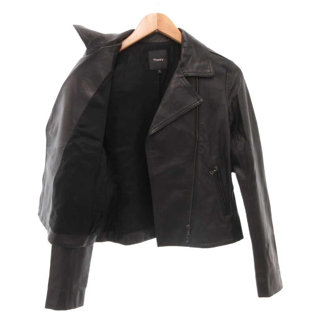 セオリー Theory 18AW ダブルライダースジャケット 革ジャン レザージャケット 羊革 S 黒 ブラック /AE レディース