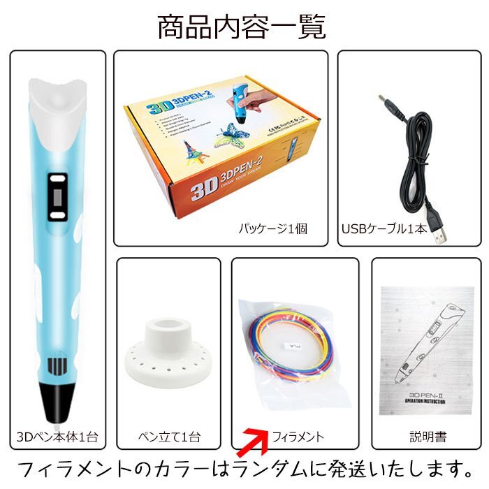 3Dプリントペン 3Dプリンター 知育玩具3dプリントペン 親子 立体絵画 DIY 手作り 低温設計 スピード調整機能 USB充電式☆6色選択/1点