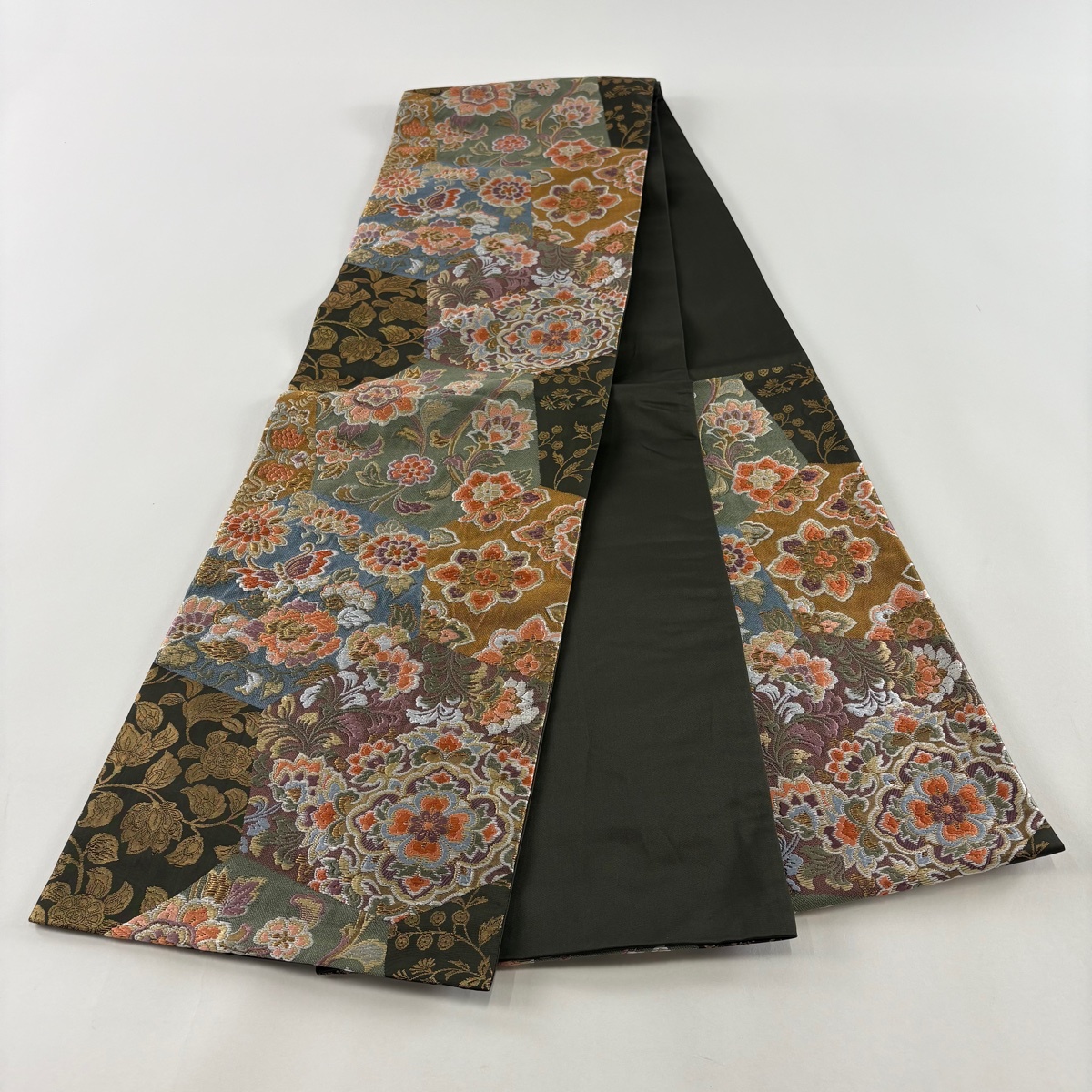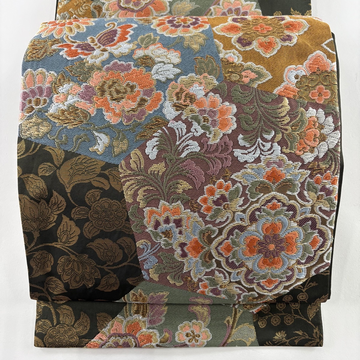 | 袋帯 美品 秀品 華文 花蝶 唐織 箔 深緑 六通 正絹 【中古】 |