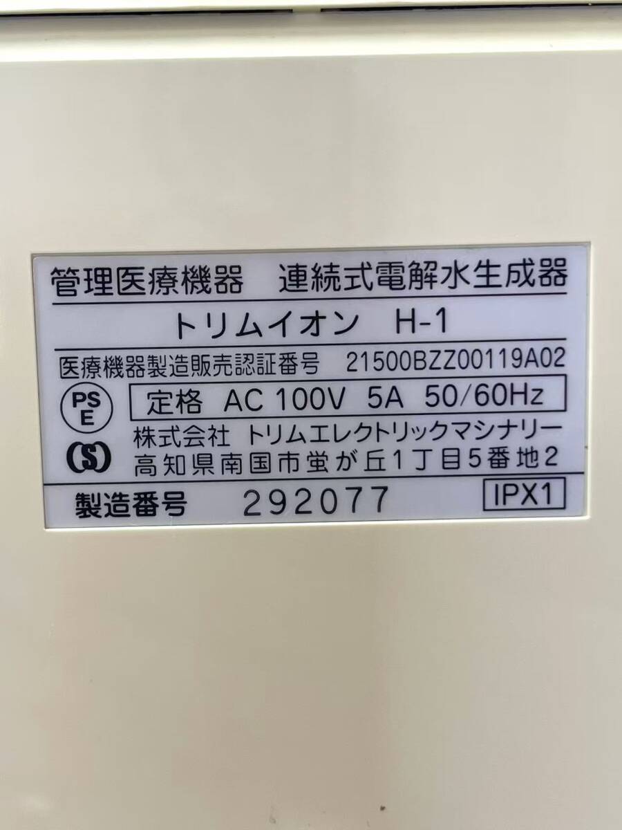 TRIM ION トリムイオン H-1 連続式電解水生成器 アルカリイオン整水器 通電確認