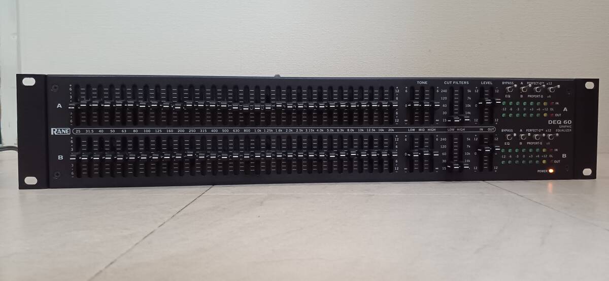 RANE DEQ-60 GEQ 滅多に見かけない逸品です 動作確認済 3バンド EQ (写真3) IN OUTレベルコントロール (写真4) 各チャンネル IN OUT レベルメーター搭載 3Nでお願いいたします。 画像は使いまわしです (前回出品分使用)DEQ 60L Graphic Equalizer - RANE Comme