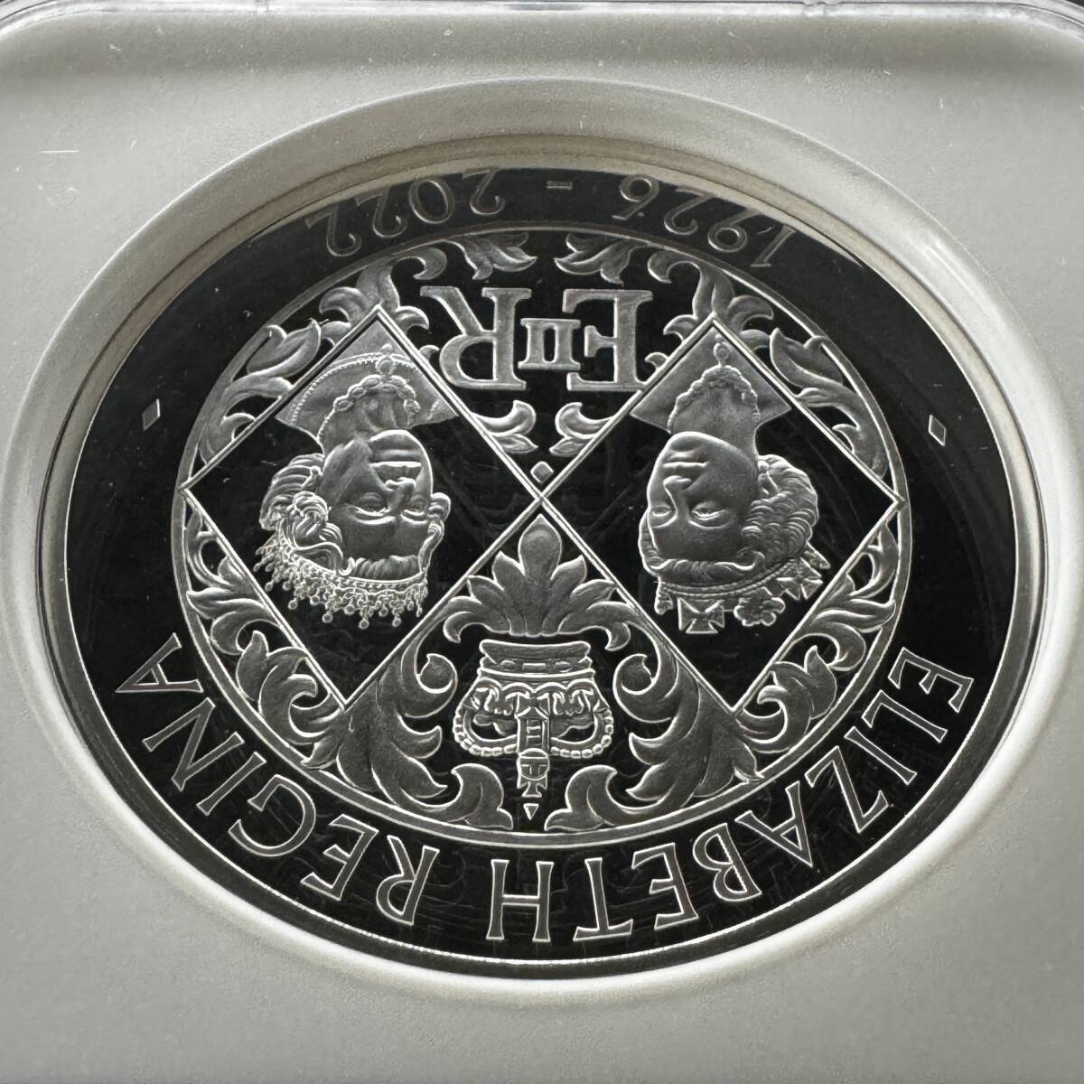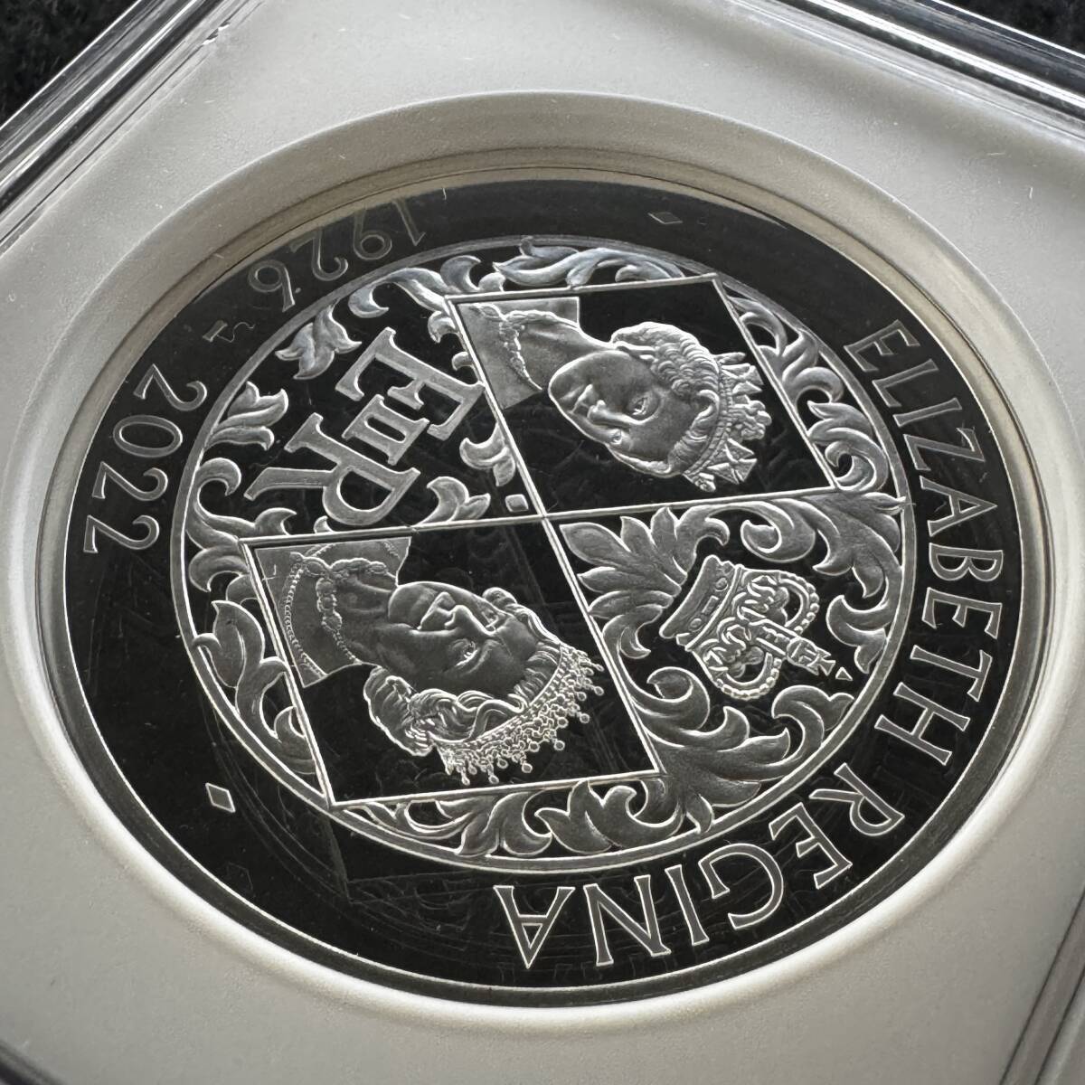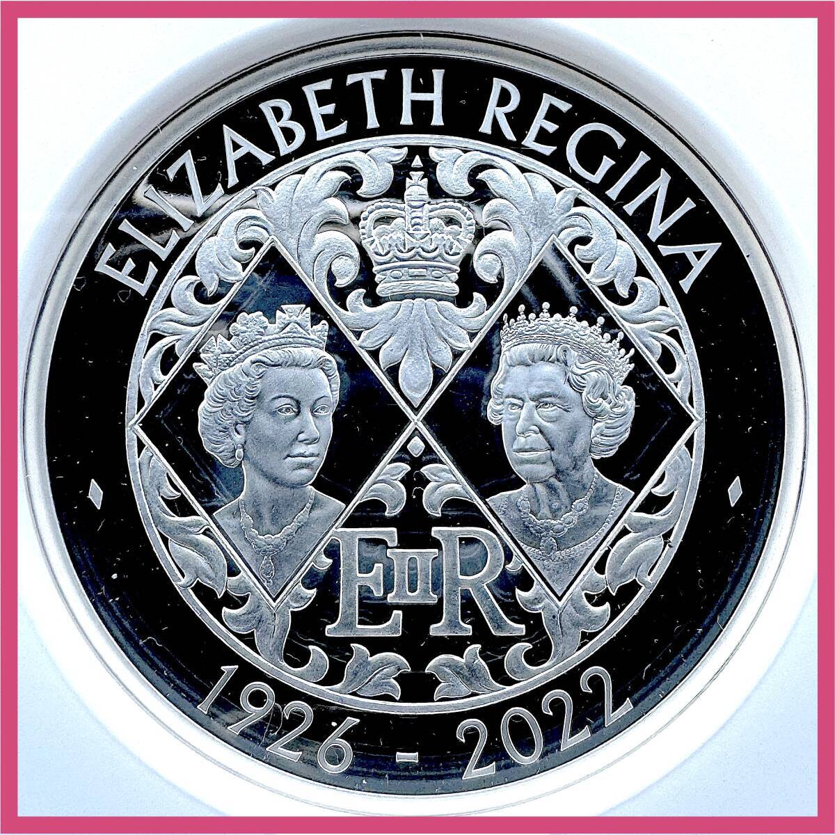 このコインは、2022年にエリザベス2世女王陛下の崩御を追悼するための特別記念銀貨です。エリザベス女王は1952年から2022年まで在位し、イギリス史上最長の在位期間を誇り、世界的に深い尊敬を集めた存在でした。