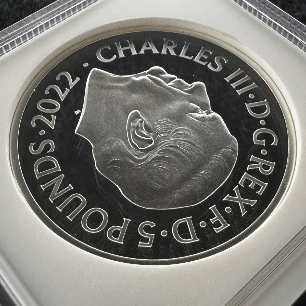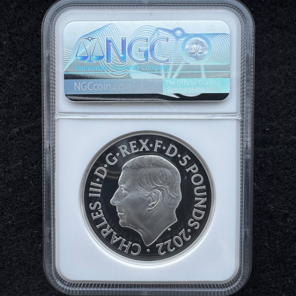 『気品と希少性が織りなす究極の煌めきを手に 最高鑑定』2022年 イギリス エリザベスⅡ追悼 ピエフォー 5ポンド 銀貨 NGC PF70 UC 絶品美品